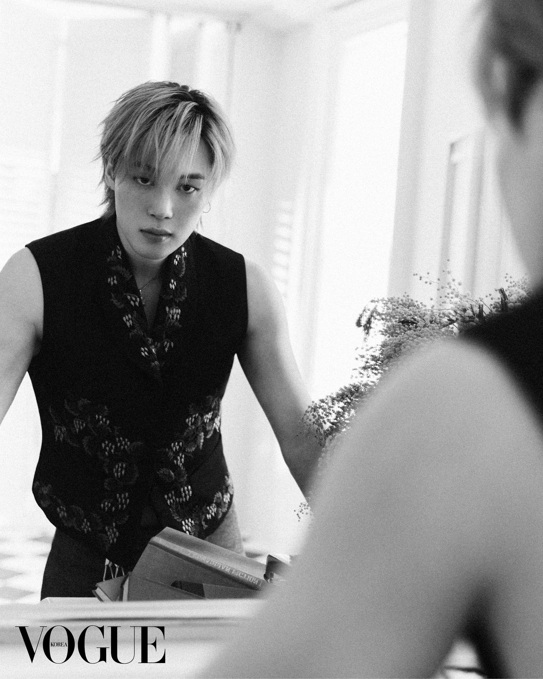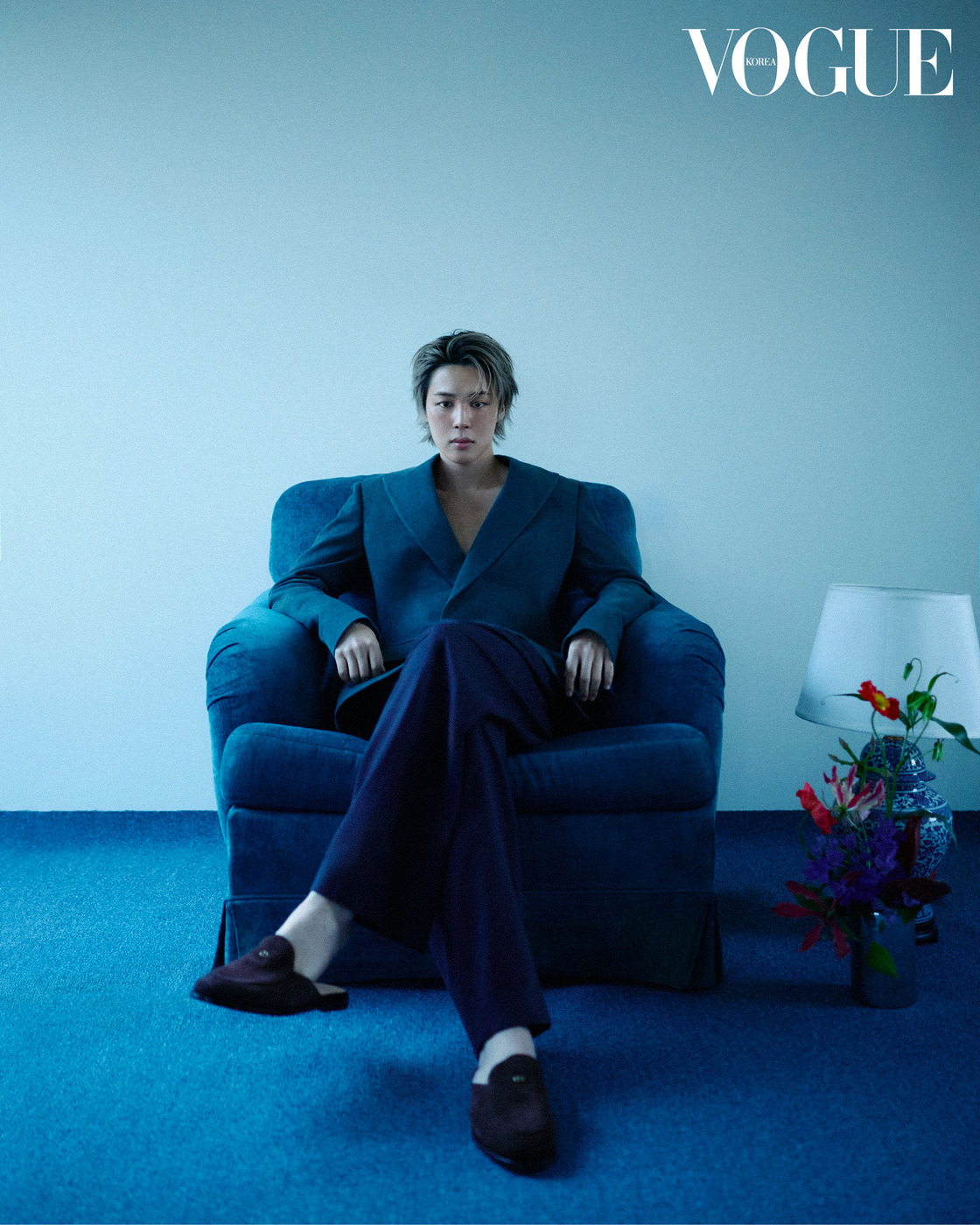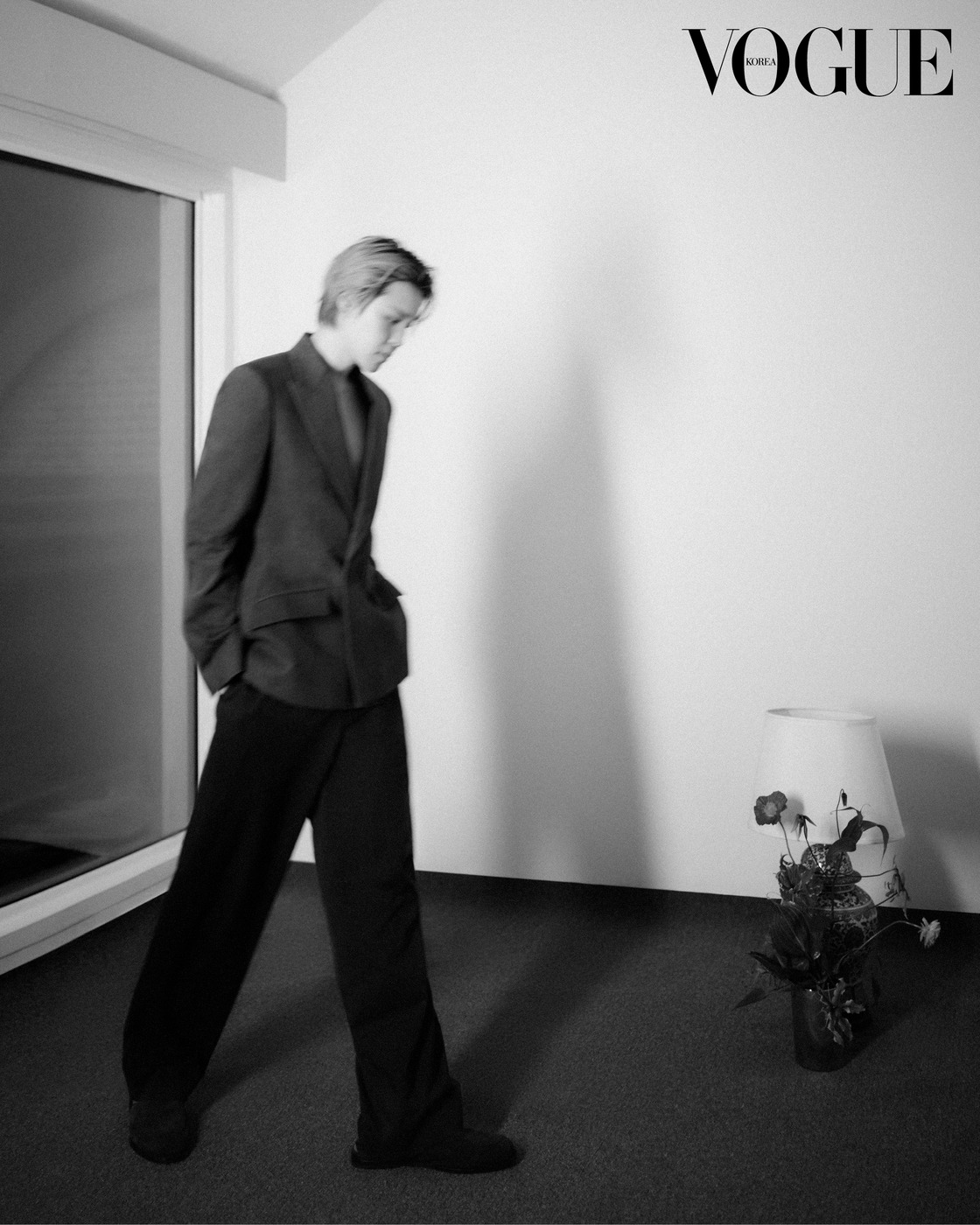조나단 앤더슨의 2026 디올 프리폴 컬렉션을 먼저 입고 '보그' 카메라 앞에 섰다. 드레스 셔츠를 매치한 단정한 검정 수트는 댄디한 인상을 준다.