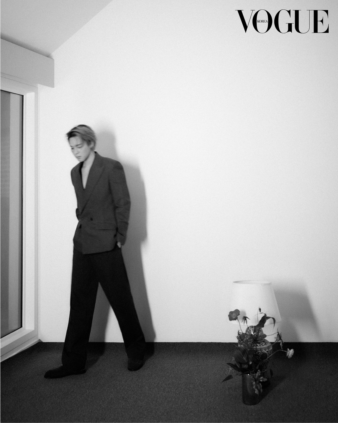 앤더슨은 디올의 상징인 바 재킷을 남성복 테일러링에 이식했다. 구조감을 살린 재킷과 팬츠를 입은 댄디한 차림의 지민이 포즈를 취했다.