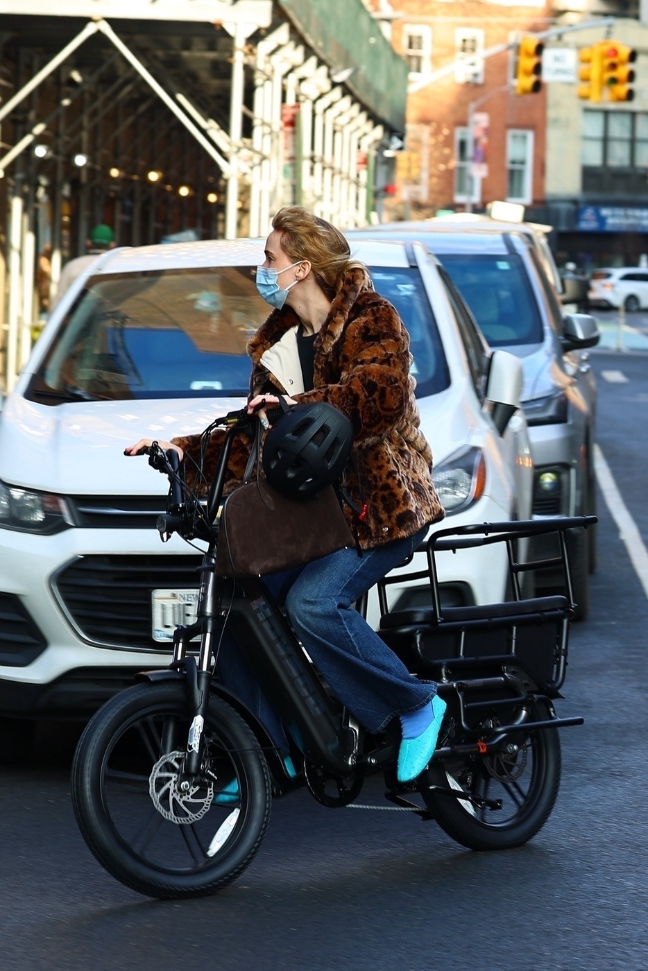제니퍼 로렌스의 아침 일상은 우리의 하루와 별반 다르지 않습니다. 파파라치 컷에 자주 등장하는 것도 그 때문이죠. 아침 일찍 일어나 아들을 자전거에 태워 직접 등교시키는 할리우드 셀럽을 놓칠 수야 있나요. 룩도 마찬가지입니다. 짧은 인조 모피 코트에 청바지 차림이라뇨. 요즘 출퇴근길에 한 번씩은 마주하는 차림이라 익숙하게 느껴집니다. 아이템 하나하나가 예사롭지 않지만요.