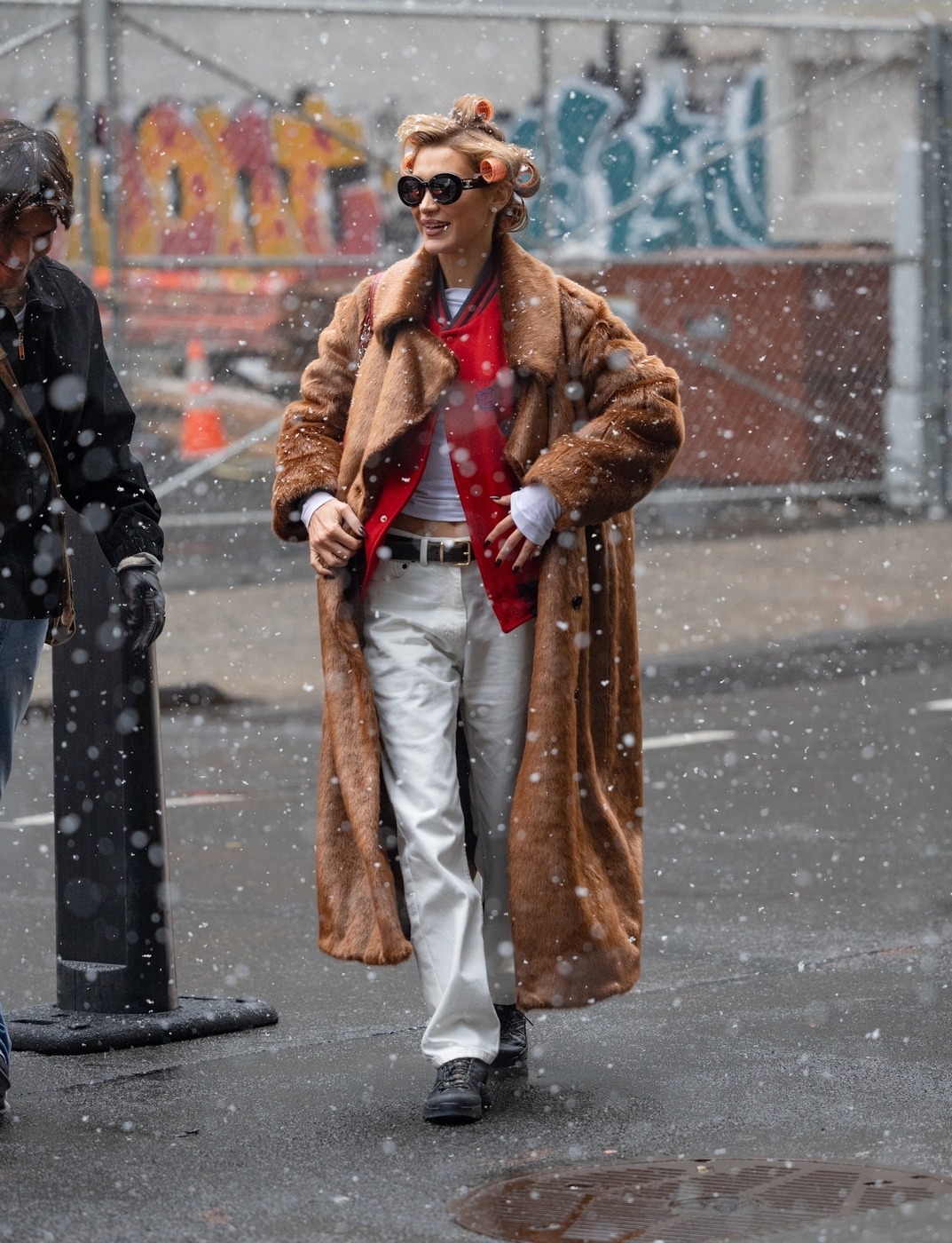 헤어롤러를 잔뜩 말고 모피 코트를 입은 모습이 멋스러운 뉴욕의 할머니 룩처럼도 보였는데요. 믹스 매치의 귀재답게 어떤 아이템을 섞어도 세련될 수 있다는 증거죠. 우리도 두툼한 모피에 화이트 데님을 매치해볼까요?