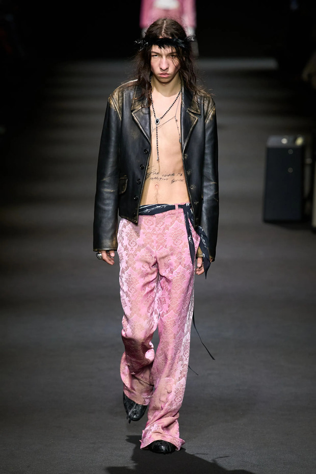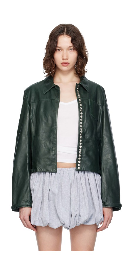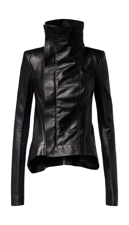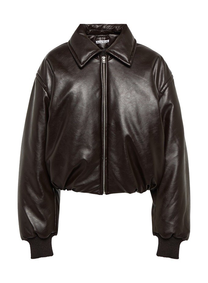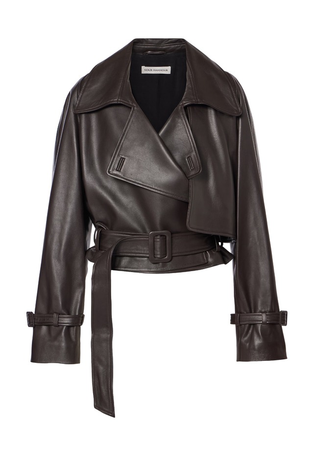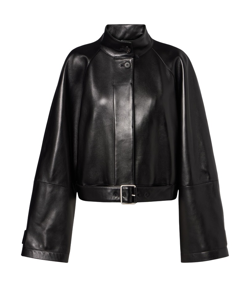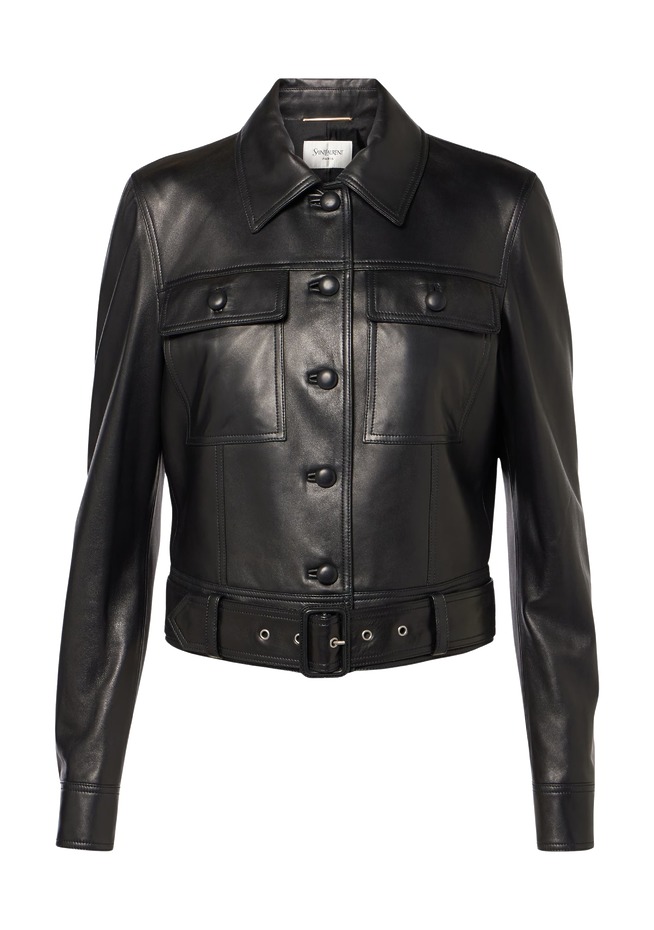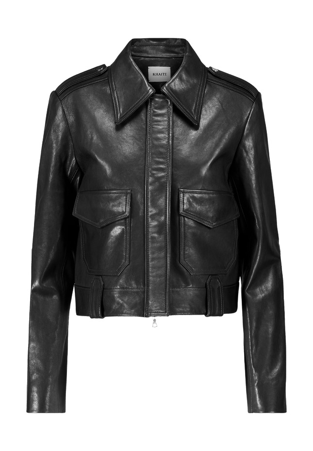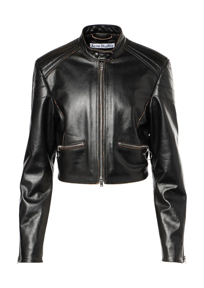 허리에서 날렵하게 잘린 크롭트 가죽 재킷은 와이드 팬츠와 연출하면 극강의 비율을 만들어낼 수 있어요.
