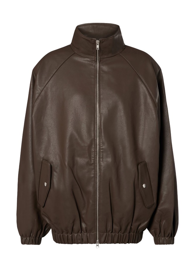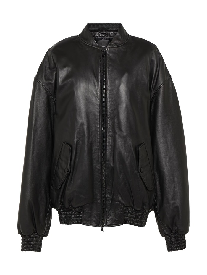 적당한 볼륨감을 지닌 가죽 봄버 재킷은 어떤 룩에나 자연스럽고 편안하게 매치하기 좋아요.