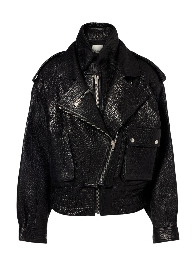 지퍼와 벨트 디테일이 들어간 클래식 바이커 가죽 재킷은 고민 없이 선택할 수 있는 정공법이죠.