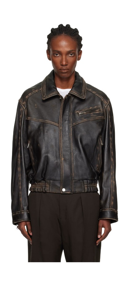 MM6 메종 마르지엘라브라운 페이딩 워싱 가죽 재킷