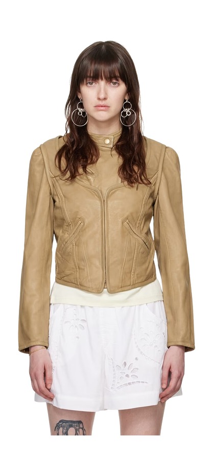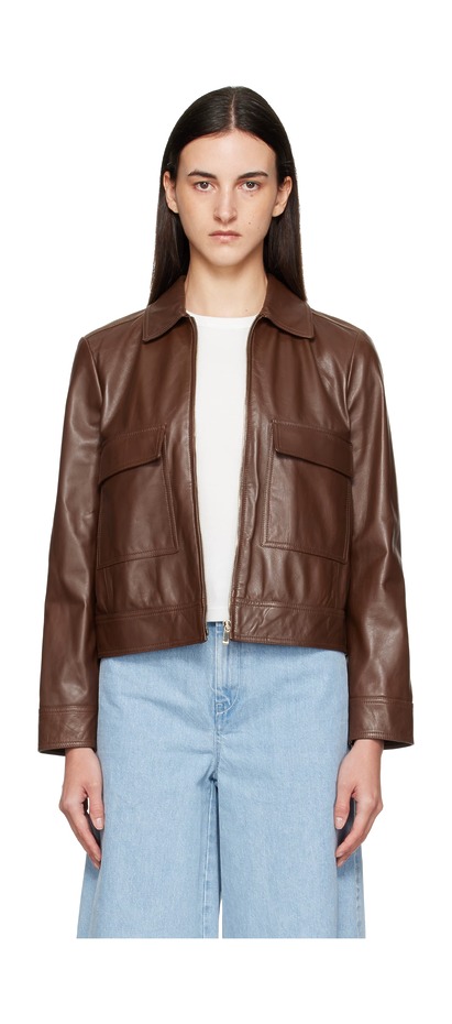 누르 하무르브라운 클린트 크롭 가죽 보머 재킷