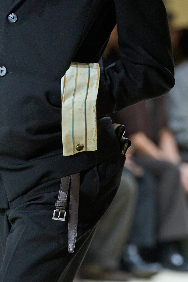 김치 국물 한 번쯤 옷에 튀어본 한국인이라 그럴까요. 프라다 2026 가을/겨울 남성복 쇼가 끝난 직후 ‘지저분한 셔츠’가 바이럴됐습니다. 물론 모델들이 실수로 소매 끝이나 칼라에 얼룩을 묻힌 건 아니에요. 미우치아 프라다와 라프 시몬스의 철저한 계산이었죠.