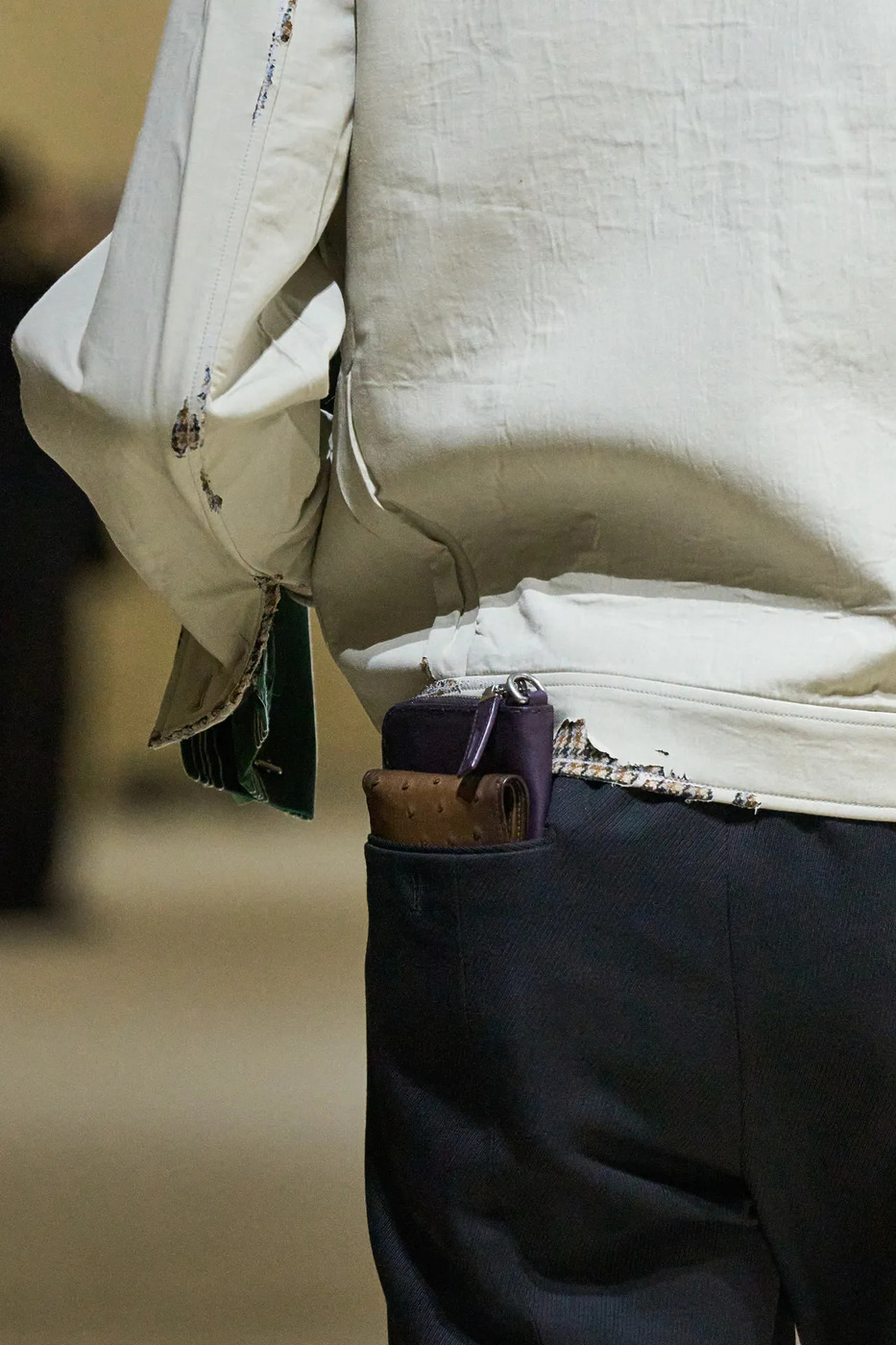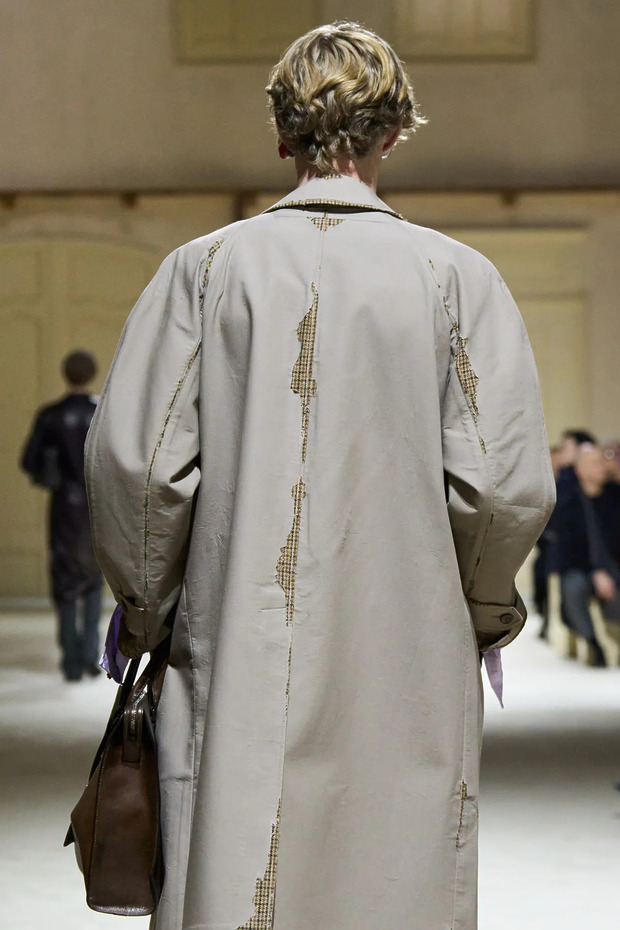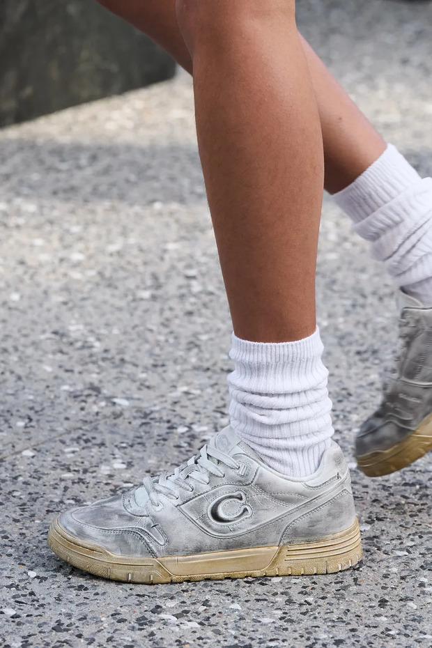 지나치게 완벽한 룩은 오히려 지금의 현실과 어긋나 보입니다. 환경, 경제, 정치 어느 것 하나 편안한 게 없는 2026년입니다. 이런 시기에 지나치게 완벽한 옷은 세상 물정 모르는 얼굴처럼 읽힐 위험이 있죠. 절제된 재킷과 날카로운 코트 아래 더러워진 셔츠를 끼워 넣은 덕에 룩이 현실에 발을 딛습니다. 사실 패션이 일부러 망가진 척한 건 처음이 아닙니다. 구찌와 코치는 먼지가 잔뜩 낀 것처럼 보이는 화이트 스니커즈를 런웨이에 내놓았고, 골든구스는 아예 낡아 보이는 스니커즈를 브랜드 정체성으로 밀어붙였죠.