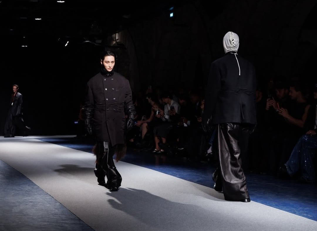 송지오 2026 가을/겨울 컬렉션 ‘크러시드 캐스트 컨스트럭티드(Crushed Cast Constructed)’ 쇼 런웨이에 앰배서더 성화가 등장했습니다. 성화는 여유로운 애티튜드와 당당한 워킹으로 존재감을 보여줬습니다. 구조적인 실루엣의 시크한 올 블랙 패션을 착용한 그는 남다른 카리스마로 런웨이를 장악했습니다.