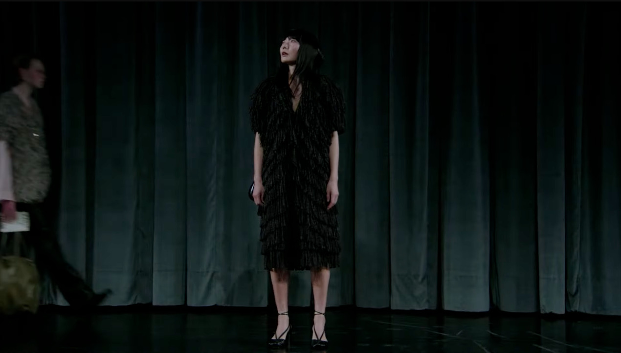 시간이 멈춘 듯한 무대 위를 방황하는 모델들 사이로 배두나가 등장했습니다. 프린지 디테일로 입체감을 살린 드레스를 입은 배두나는 자유로운 몸짓으로 공간을 누볐습니다. 그녀의 몸짓에 따라 옷이 춤추듯 움직여 꿈꾸는 듯한 분위기를 냈죠.
