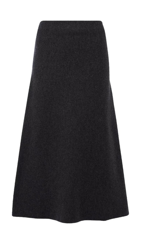 가을에는 카디건에 발목까지 오는 그레이 펜슬 스커트를 입고 스웨이드 로퍼를 신은 뒤 가죽 재킷을 걸쳤죠. 그리고 겨울에는 셔츠에 스웨터를 겹쳐 입은 뒤 니하이 부츠를 신고 발목까지 오는 맥시 코트를 착용했고요. 사실 이 스커트는 모든 것과 잘 어울립니다. 트레이닝 팬츠를 안에 입어봤잖아요? 아우터는 나일론 봄버부터 레더 재킷, 울 코트까지 다 잘 어울리죠.