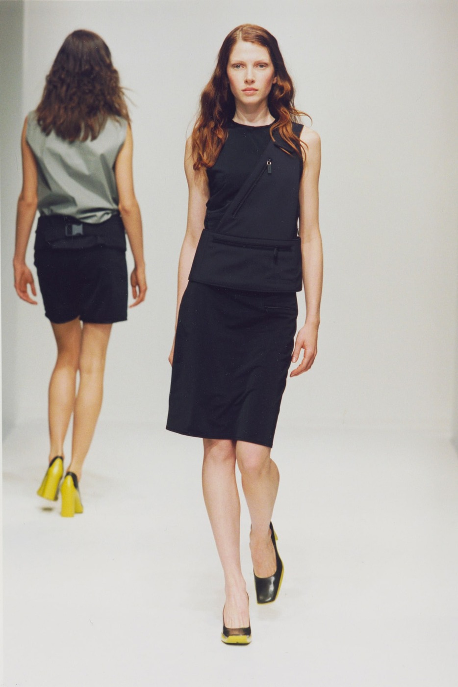 1990년대 슈즈를 얘기하면서 투명 힐을 지나칠 순 없죠. 사랑받기도 하고 미움받기도 했던 슈즈는 Y2K 붐이었던 2000년대 중반까지 미니멀리스트들이 사랑한 매우 특별한 피스였습니다. 샤도 랄프 루치가 1999 봄/여름 런웨이에서 선보인 두툼한 블랙 힐의 오픈토 투명 슈즈를 보세요. 발등만 투명해졌을 뿐인데 전체적으로 관능미가 생겼습니다. 요즘엔 베트멍과 메종 마르지엘라에서 그 명맥을 이어가고 있으니 체크해보세요!