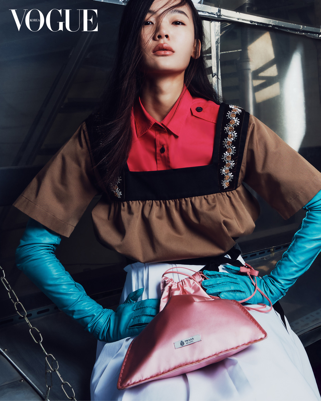 Hard Core “지금 세계의 모든 것이 하드코어입니다.” 미우치아 프라다와 라프 시몬스는 강렬한 자극이 가득한 세상을 바라보는 여성을 그렸다. 유니폼에 가까운 셔츠, 보석 장식 톱, 에이프런을 닮은 리본 장식 화이트 코튼 스커트, 가죽 장갑과 ‘위시 파우치’ 백까지. 모든 것이 충돌하는 혼란 속에 탄생한 프라다의 미학.