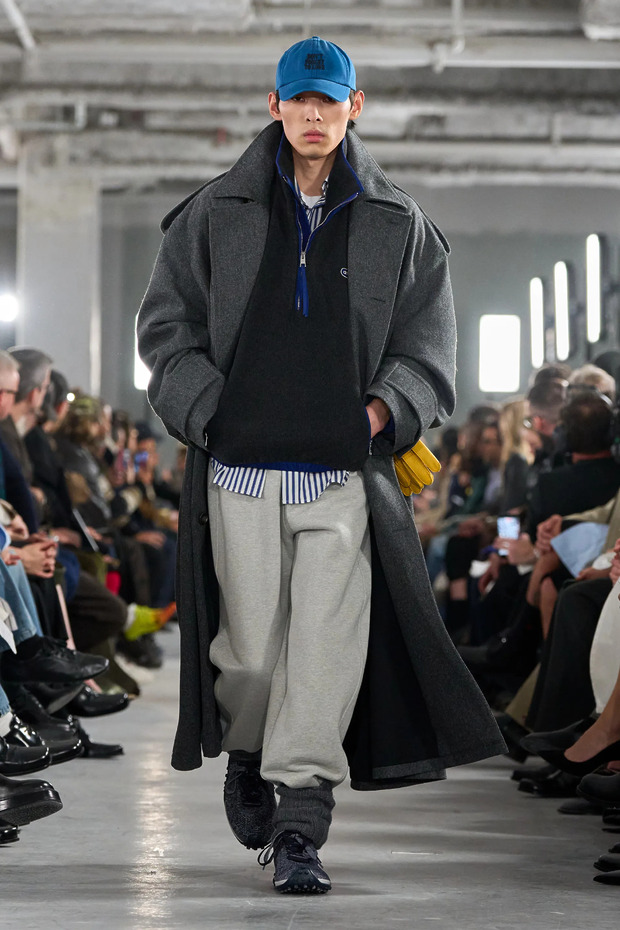그렇게 다짐한 지도 벌써 10년, 그러니까 강산도 바뀔 만큼 긴 시간이 지났습니다. 그리고 저는 지금 바지 밑단을 양말 속에 쑤셔 넣을지 말지를 고민 중이죠. 마음이 바뀐 이유는 단지 ‘오랜 시간이 흘러서’ 때문만은 아닙니다. 2026 가을/겨울 남성복 시즌에 여러 브랜드가 이 스타일링을 선보였거든요. 아미부터 살펴볼까요? 수면용 못지않게 두꺼운 양말에 스웨트 팬츠를 매치했죠. ‘캐주얼’ 그 자체였던 하반신과 달리, 상반신은 옷을 한껏 차려입은 점도 흥미로웠습니다. 타이, 셔츠, 코트 등 격식 넘치는 아이템들로 가득했죠. 최근 뜨거운 아이템 중 하나인 플리스를 활용한 믹스 매치 룩은 당장 내일 따라 입고 나가더라도 무리가 없겠더군요.