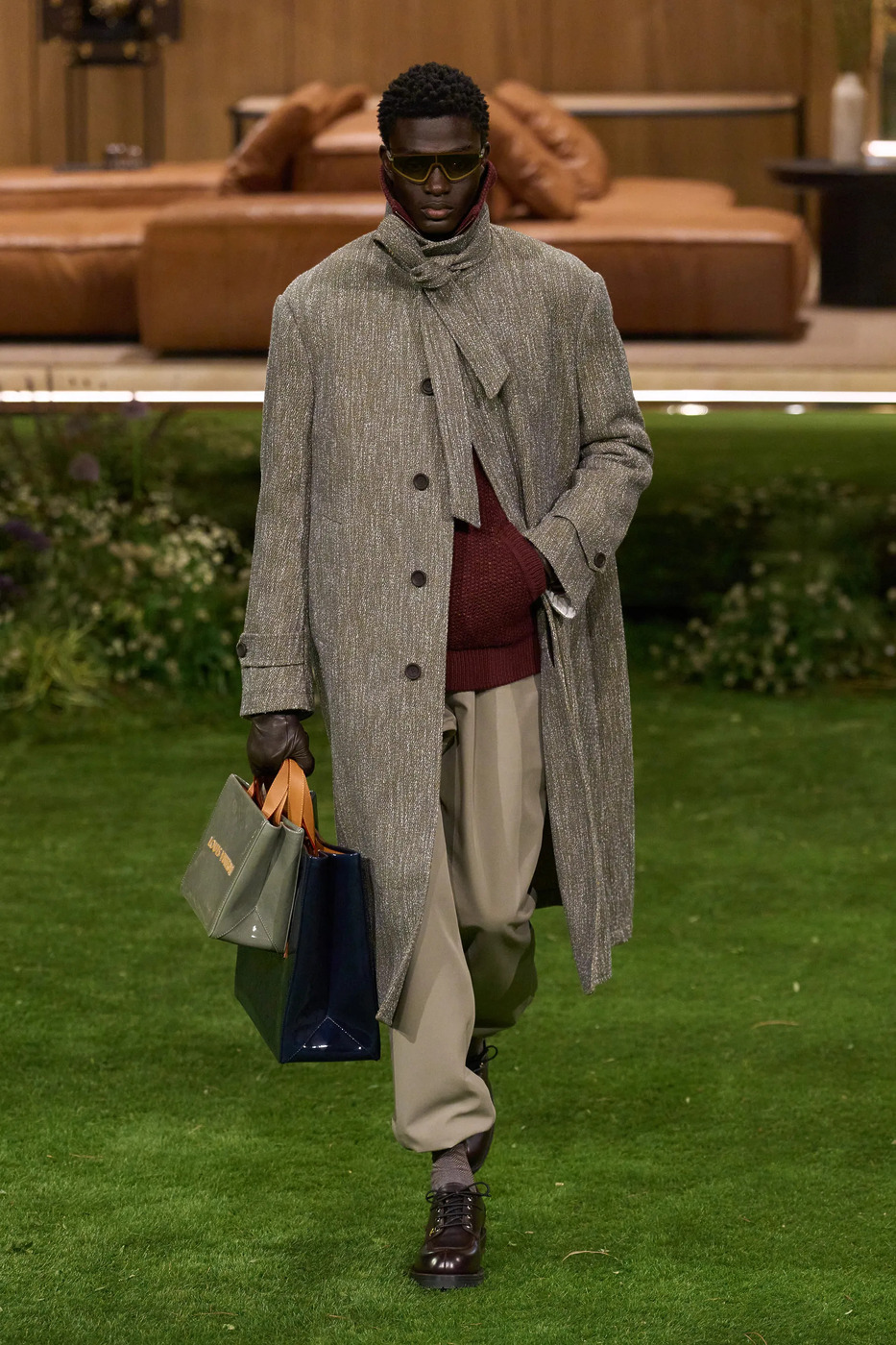 20여 년 만에 밀라노에서 쇼를 진행한 랄프 로렌은 ‘양말에 바지 넣기’도 충분히 우아할 수 있음을 이야기하려는 듯했습니다. 케이프를 두른 ‘올 브라운’ 룩은 올드 머니 그 자체였고, 부츠를 신은 모델은 수십 년 전 미국의 상류층 대학생을 연상시켰죠.
