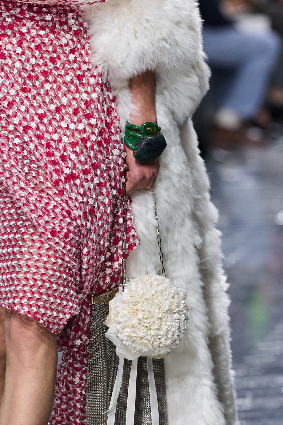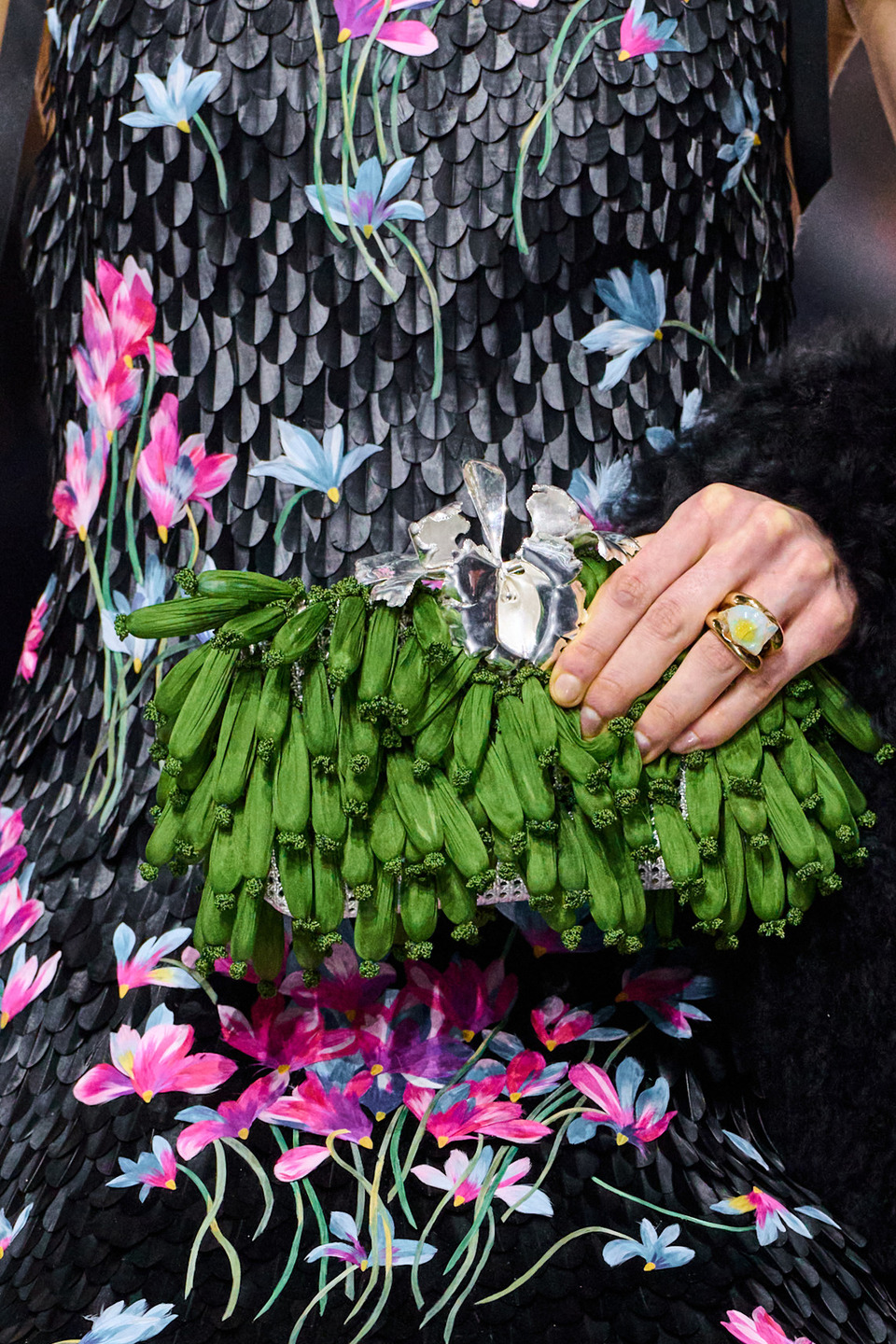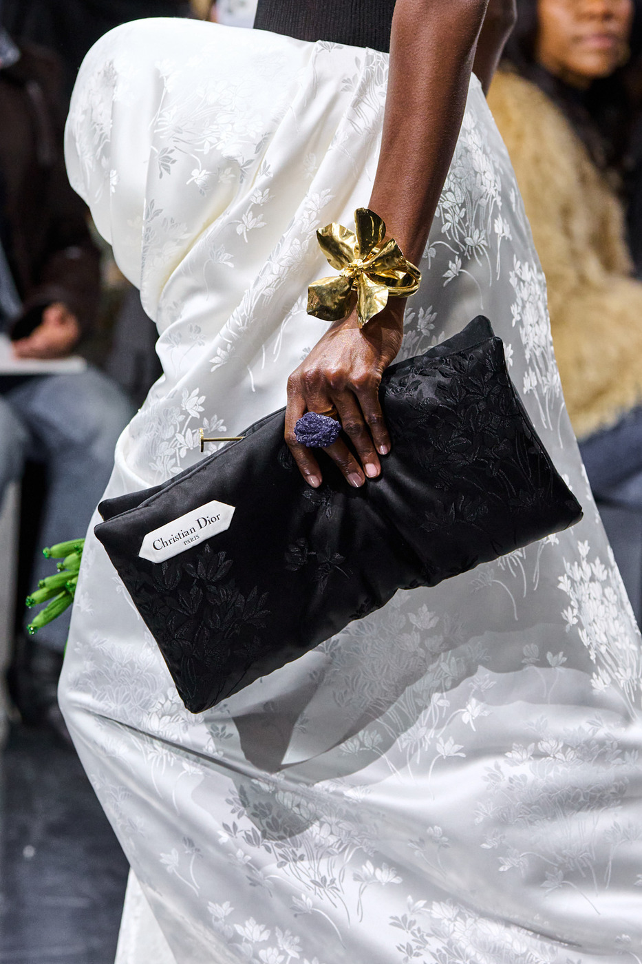 사실 꾸뛰르 쇼에서 액세서리는 흔치 않습니다. 디올을 비롯해 여러 하우스가 액세서리를 생략하지만, 조나단은 첫 쇼에서 가방을 특별한 위치에 두었죠. 꾸뛰르의 보물처럼 디자인된 가방은 때로는 꽃다발 같았고, 때론 18세기 프랑스 직물로 만들어 그 자체로 예술품과 다름없었고요. 초현실적인 형태, 아카이브 레퍼런스, 트롱프뢰유 효과를 이용한 클러치, 레이디 디올 같은 하우스의 아이콘은 아름다운 디테일을 통해 장인 정신과 창의성을 드러냈습니다. 스크롤을 내려 사진으로 직접 확인하세요.