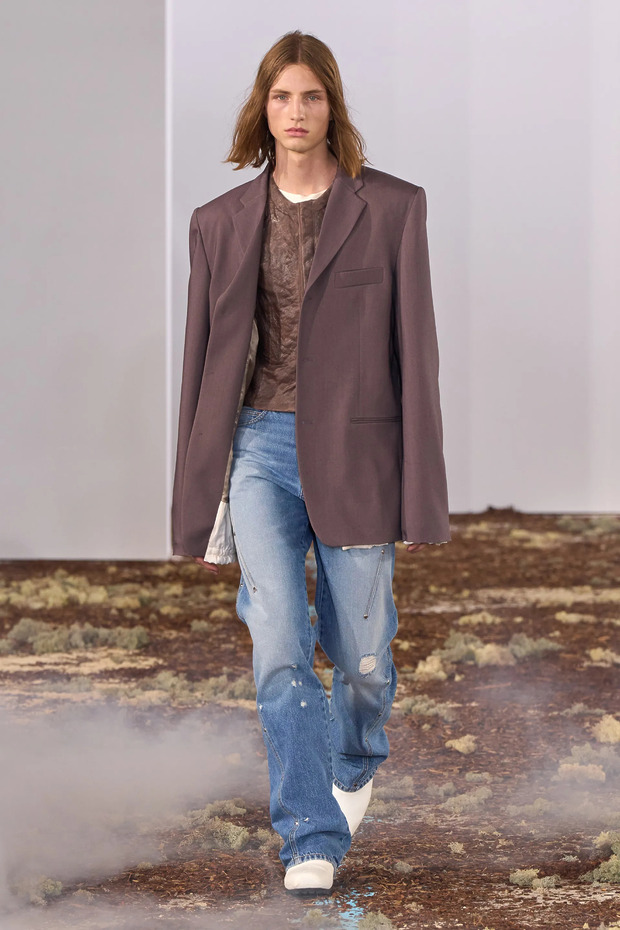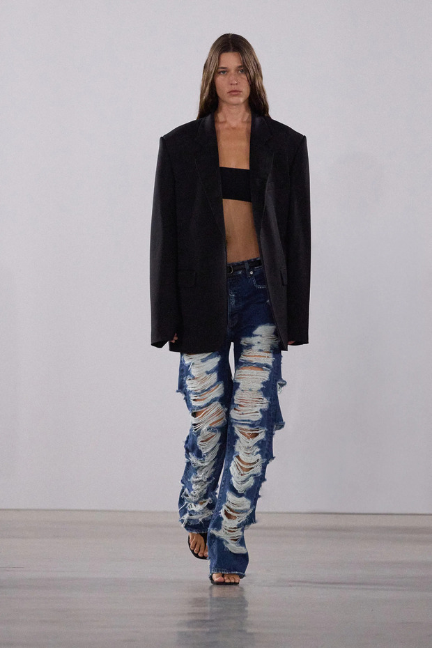 브랜든 맥스웰 쇼에는 무릎 부분이 뜯어진 데님(예전에는 ‘무파진’이라는 애칭으로 불리곤 했습니다)이 반복적으로 등장했습니다. 20년 전 문법을 전혀 따르지 않은 스타일링이 특히 흥미로웠죠. 그때의 디스트레스트 데님은 그런지 혹은 키치한 무드를 자아내는 ‘스페셜리스트’였습니다. 브랜든 맥스웰은 여전히 비슷한 분위기를 머금은 디스트레스트 데님을 케이프 셔츠, 꽃무늬 블레이저 등 귀족풍 아이템과 매치했죠. ‘패러독스 드레싱’, 즉 믹스 매치의 정석이었습니다. 데일리 룩으로 따라 하기에도 적합했고요.