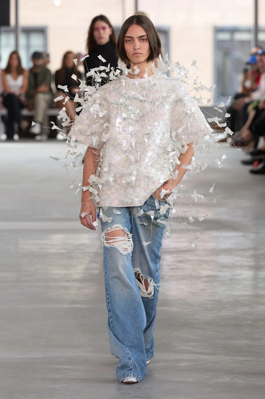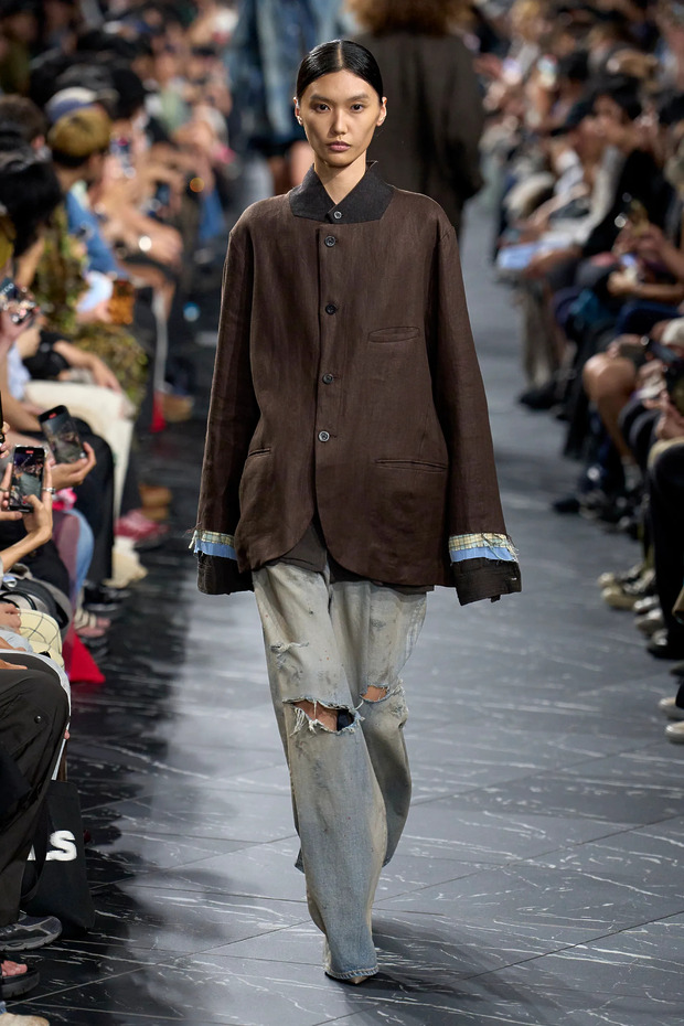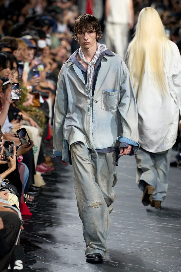 이 외에도 디스트레스트 데님 활용법은 무궁무진합니다. 도쿄 기반의 브랜드 안셀름(Ancellm) 런웨이에서는 빈티지풍 아이템으로 온몸을 도배한 모델들이 등장했습니다. 미우치아 프라다와 라프 시몬스가 최근 남성복 컬렉션을 선보이며 던진 “패션은 완벽하지 않을수록 아름답다”는 메시지가 떠올랐죠. 꾸뛰르 피스가 연상되는 톱을 활용해 지금은 안심하고 멋을 잔뜩 부려도 좋은 시대라는 사실을 다시 상기시킨 아레아는 또 어떻고요!
