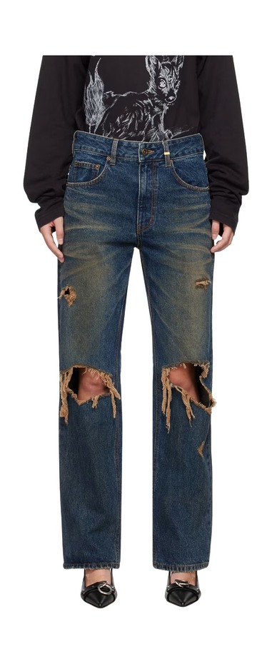 팔랑귀라고 손가락질해도 좋습니다. 이제 고집을 꺾을 때가 온 것 같거든요. 꾀죄죄한 그런지 스타일링이 대세인 탓인지, 지금 런웨이는 찢어진 청바지가 범람하고 있습니다. 남루한 인상마저 주는 2000년대 초반 유행했던 디스트레스트 데님이 돌아온 거죠. 특히 맥퀸의 2026 봄/여름 컬렉션에 등장한 디스트레스트 데님 룩은 ‘그때 그 시절’ 향수를 자극하기에 충분했습니다. 미드리프와 치골이 훤히 드러날 정도로 밑위가 짧은 팬츠, 코르셋 톱과의 조합은 Y2K 스타일 그 자체였죠. 군데군데 해진 디테일이 돋보이는 바지는 지금도 수천 달러에 거래되는 언더커버의 전설적인 청바지, ’85 데님(2005 가을/겨울 컬렉션에 등장한 아이템입니다)’에서 영감을 받은 것처럼 보이는군요.