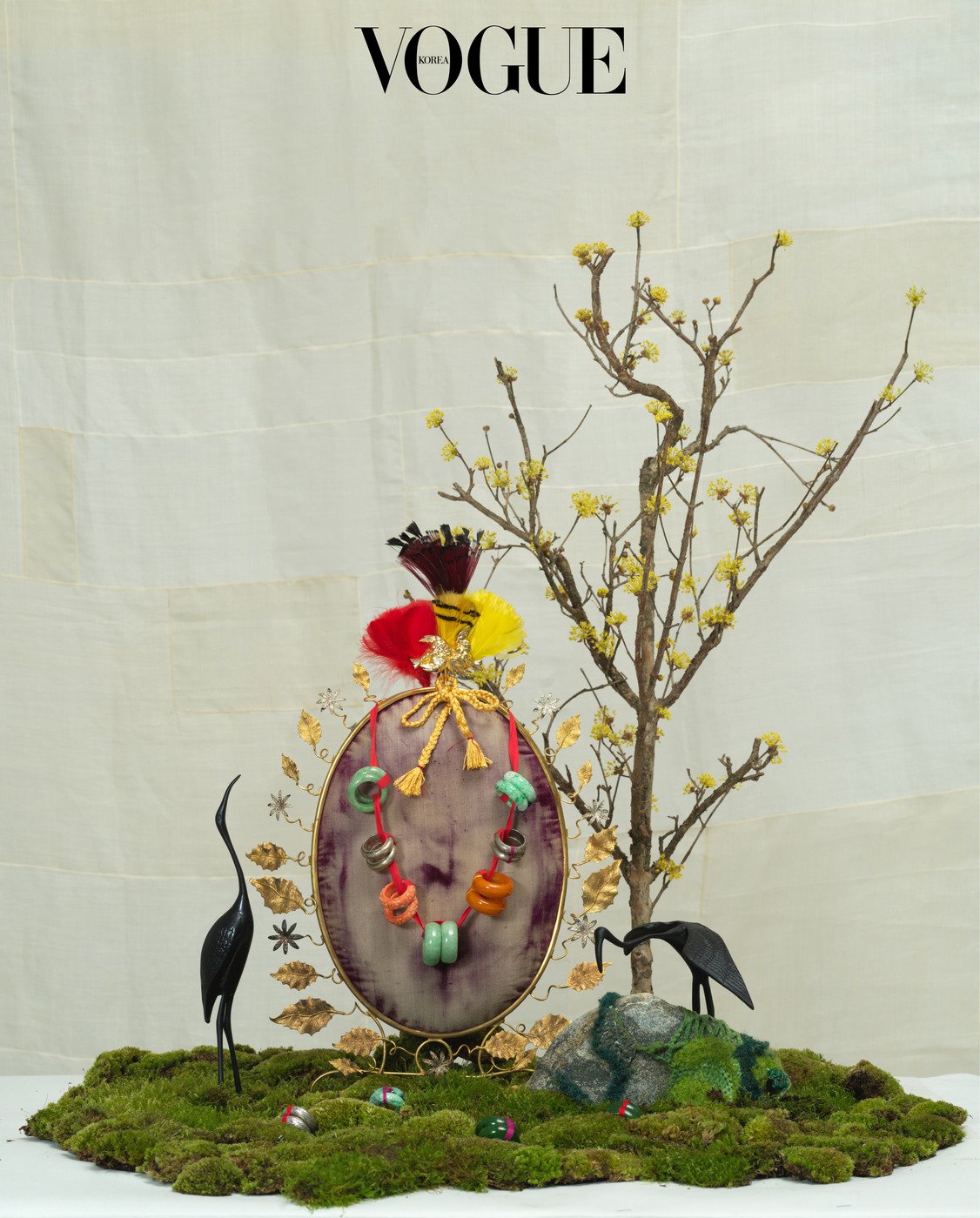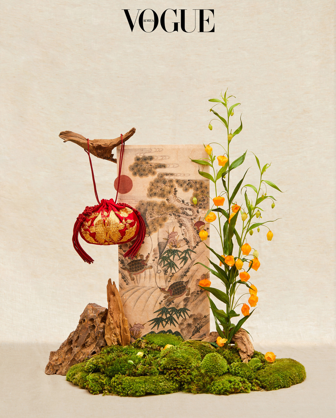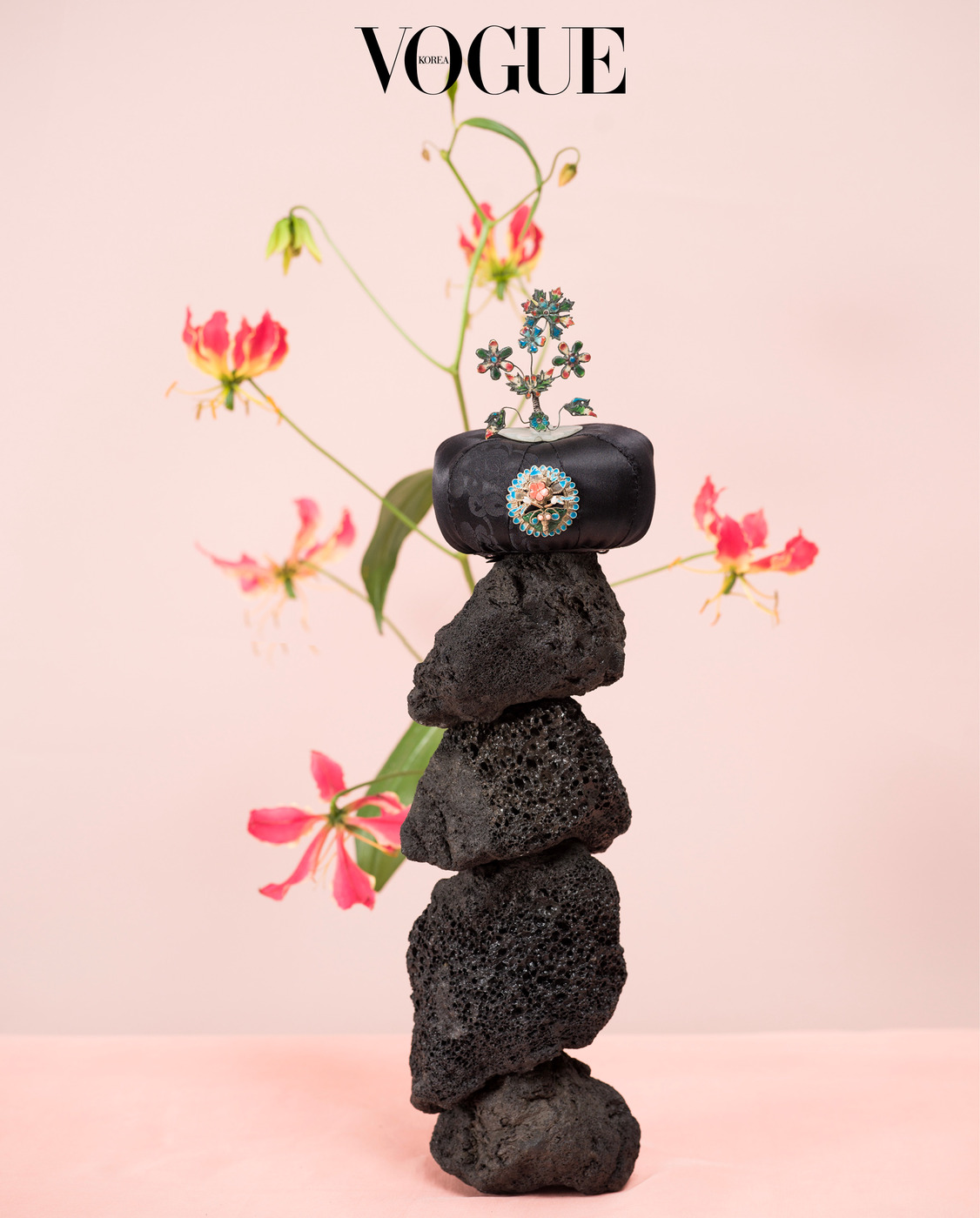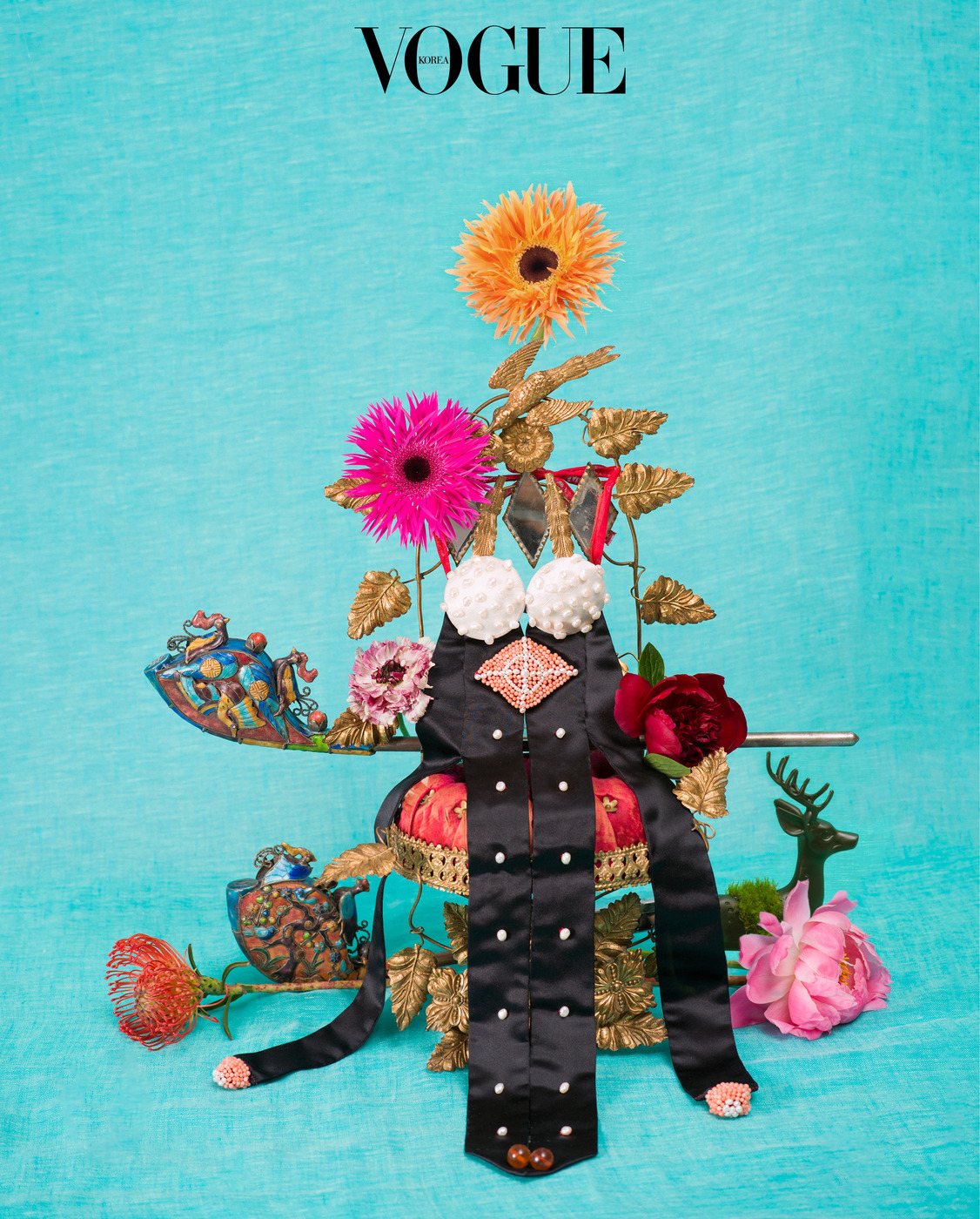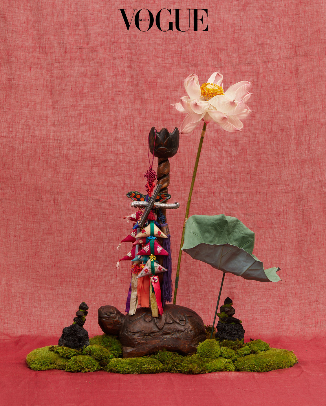 서영희 지난 30년간 쌓아온 노하우죠. 전부 <보그>를 통해 얻은 감사한 인연이고요. 국가무형유산 궁중채화 보유자 황수로 선생님이 만든 연꽃도 아주 귀한 작업입니다. 거북이 있으니 왠지 연꽃을 놓고 싶더군요.(웃음) 저와의 오랜 인연으로 흔쾌히 내준 장인들의 소중한 유산을 다룰 때마다 성실하게 임한 지난 세월에 대한 감사를 느낍니다.
