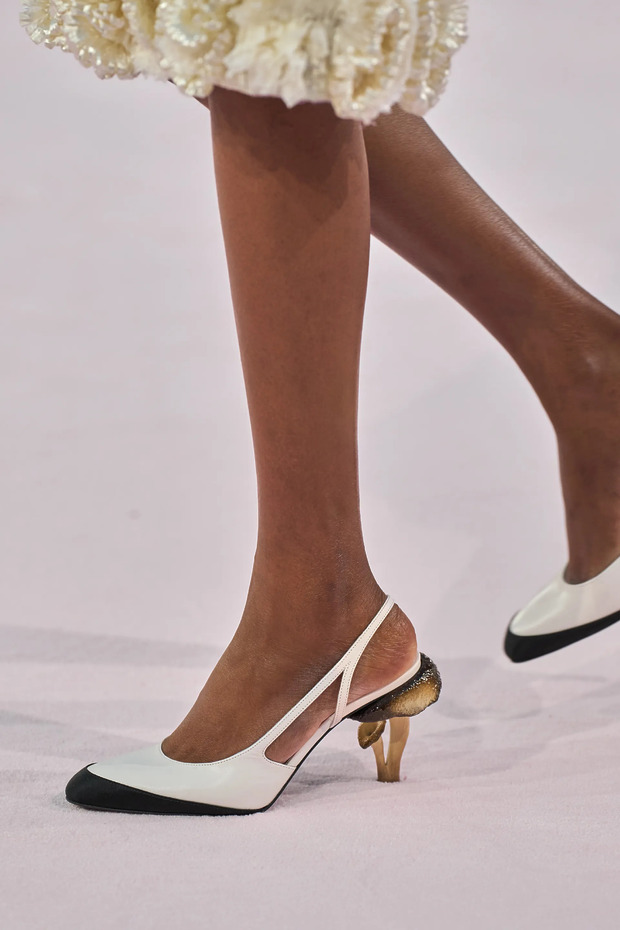 버섯이 없다면 생태계는 순환할 수 없습니다. 서구권에서 버섯은 환생과 수수께끼를 상징하는 일종의 부적 같은 존재죠. 마티유 블라지는 바로 이 부분에 주목했습니다. 화려한 레드 컬러, 시어 소재 위에 포자처럼 핀 자수는 전부 버섯을 레퍼런스 삼은 듯했습니다. 조금 전 이야기한 버섯 모양 힐은 또 어떻고요! 버섯에서 영감을 받았던 가브리엘 샤넬과 칼 라거펠트는 전설이 됐습니다. 마티유 블라지도 그들과 같은 길을 걷게 될까요?