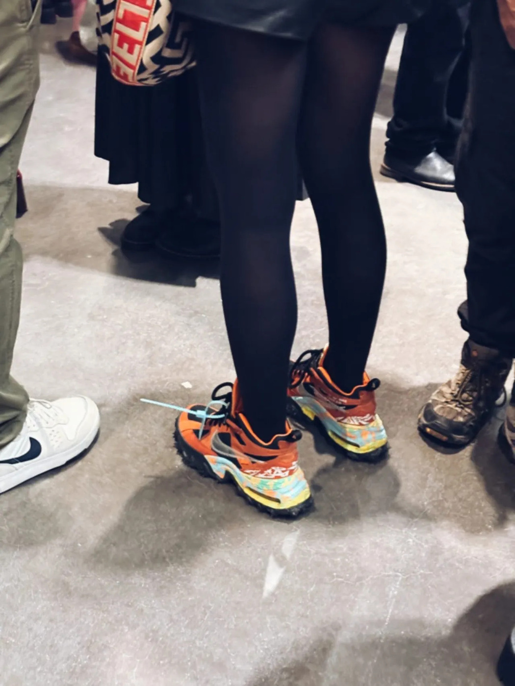 일명 ‘퓨리’가 기지개를 켜는 걸 보니 역시 런웨이에서 기미가 있었던 대로 화려한 모양과 컬러의 스니커즈가 다시 유행하는 걸까 싶었습니다. 그리고 얼마 가지 않아 더 화려한 스니커즈를 마주쳤습니다. 나이키와 오프화이트의 협업으로 탄생한 에어 테라 포마 만트라는 2026년 스니커즈 흐름과 정확히 맞닿아 있습니다. 아웃도어와 테크의 중간 지점 같은 실루엣에 색은 확실히 튀죠. 블랙 양말과 레더 쇼츠처럼 단순한 조합에 이 스니커즈 하나만 신어도 캐릭터가 또렷해집니다. 신발이 강할수록 옷은 단순하게 가는 것이 안전합니다.