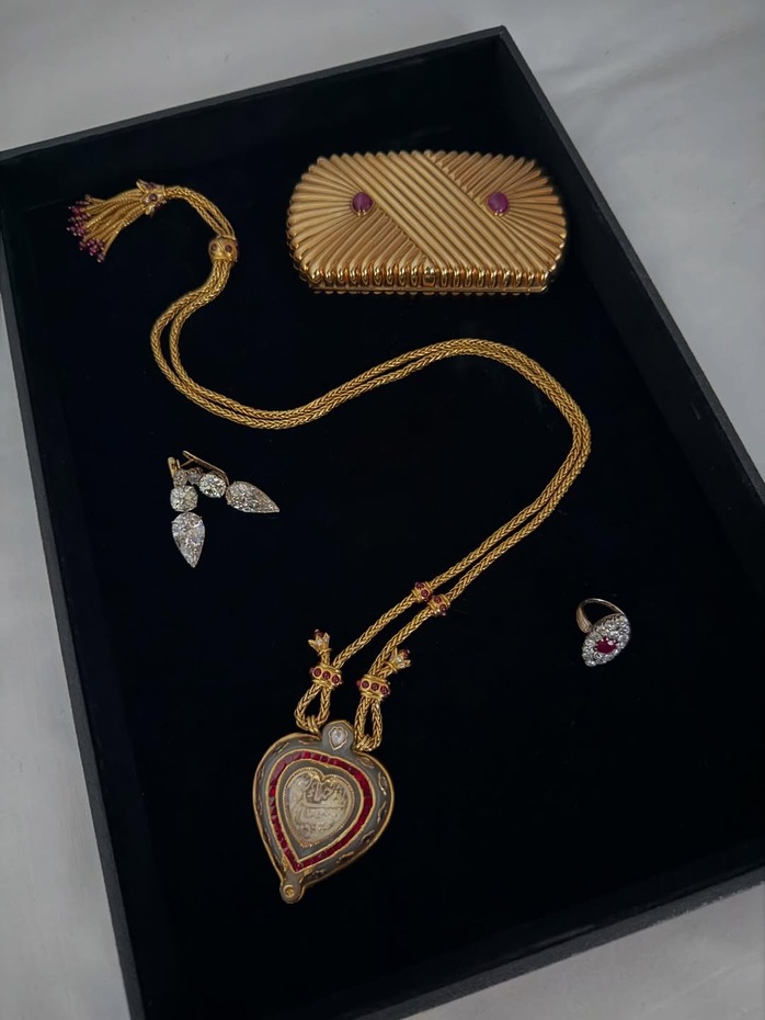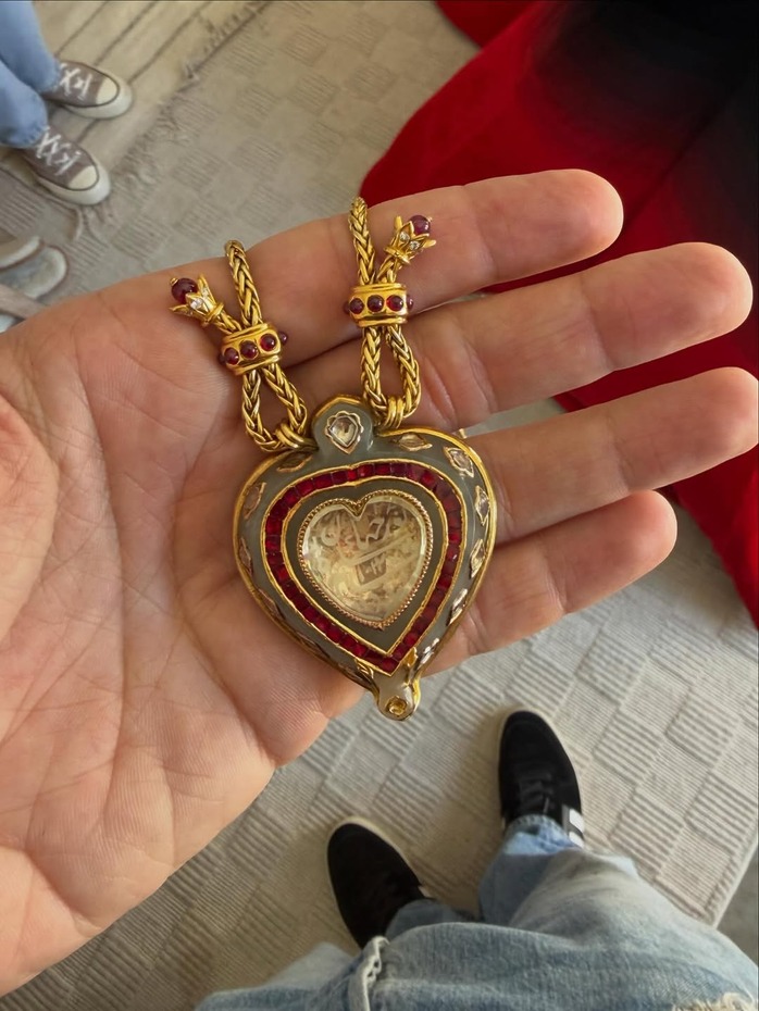 이날 로비 룩의 정점은 그녀가 한 목걸이였습니다. 엘리자베스 테일러의 상징적인 하트 모양 타지마할 다이아몬드가 박힌 까르띠에 목걸이였죠. 이 목걸이는 테일러의 두 번째 남편 리처드 버튼이 50여 년 전, 그녀의 40번째 생일 선물로 준 것으로 유명합니다. 고인이 된 테일러의 하이 주얼리 컬렉션 중에서도 가장 상징적인 목걸이입니다. 로맨스와 역사가 깃들어 있어 <폭풍의 언덕> 홍보 투어의 시작을 알리기에 가장 완벽한 아이템이죠. 하트 모양 펜던트에는 ‘사랑은 영원하다’라는 뜻의 페르시아어 문구와 함께, 무굴제국의 황제 샤 자한기르(Shah Jahangir)에게서 이 보석을 최초로 선물 받은 여성인 누르 자한(Nur Jahan)의 이름이 새겨져 있습니다.