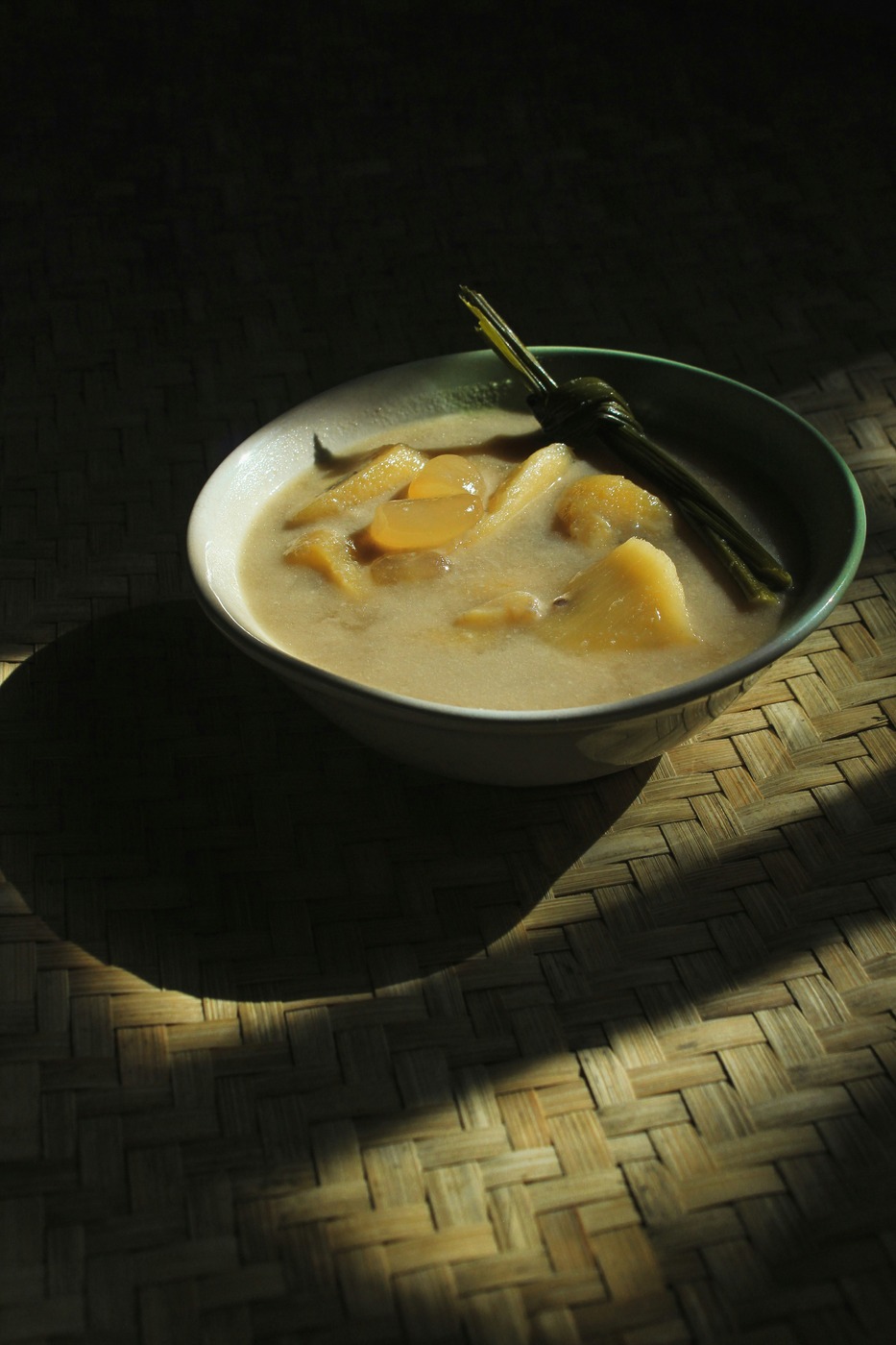6. 국물을 한 국자 떠서 미소 된장을 올리고 잘 풀어주세요.