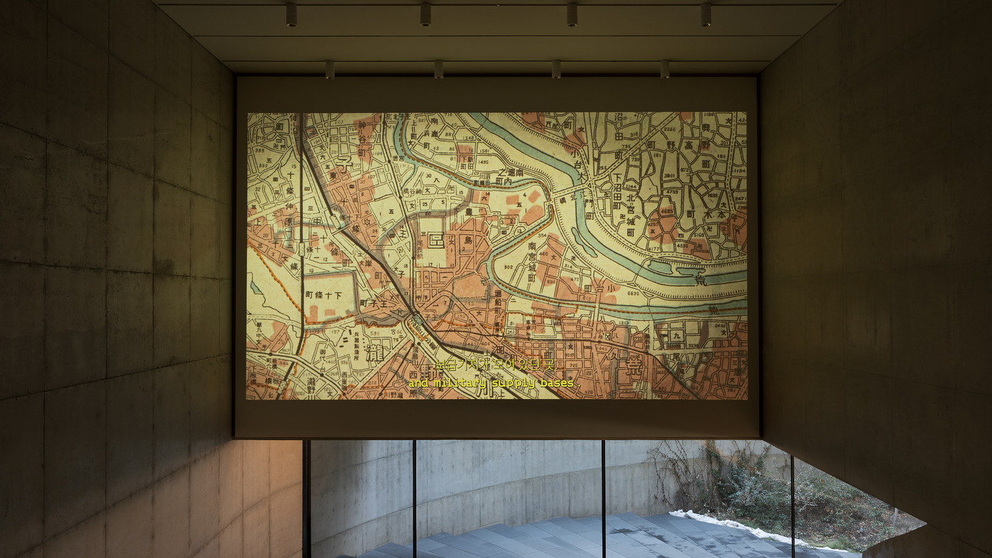 총 556명의 지원자 중 20인이 본선에 올랐고, 그중 이아람 작가가 최종 대상으로 선정되었습니다. 퍼포먼스, 영상, 설치 등의 매체를 통해 장소와 권력, 인간 사이의 관계를 다뤄온 이아람 작가는 ‘밟힌 벌레마다 별이 된다’는 영상을 소개했습니다. 작품은 미군 기지로 사용되었던 용산 기지의 역사를 따라갑니다. 알고 보니, 일제강점기 일본군의 훈련소였다더군요. 130년 이상 한국인이 출입할 수 없는 서울의 중심 땅이었습니다. 이아람은 식민과 점령, 군사적 폐쇄 속에서 변위되고 외부화된 땅의 기억을 추적했습니다. 사람이 아닌 일명 ‘땅의 디아스포라’입니다. 130여 년간 기억이 사라지고, 감각이 단절된 순간 땅의 입장을 실제 디아스포라로 살았던 자이니치 3세 김영옥(가네야마 유노)의 목소리를 통해 이야기하죠. 단순히 한국만의 이야기는 아니고, 핵실험으로 역시 단절된 네바다의 땅, 재일 한국인의 터전이던 이타바시까지 엮어내면서 이야기의 층위를 단단히 합니다. 이아람 작가의 말처럼 결국 “‘밟힌 벌레’들이 ‘별’로서 귀환하는 취약한 존재들의 우주적 회복을 상상하는 사변적 서사”입니다.