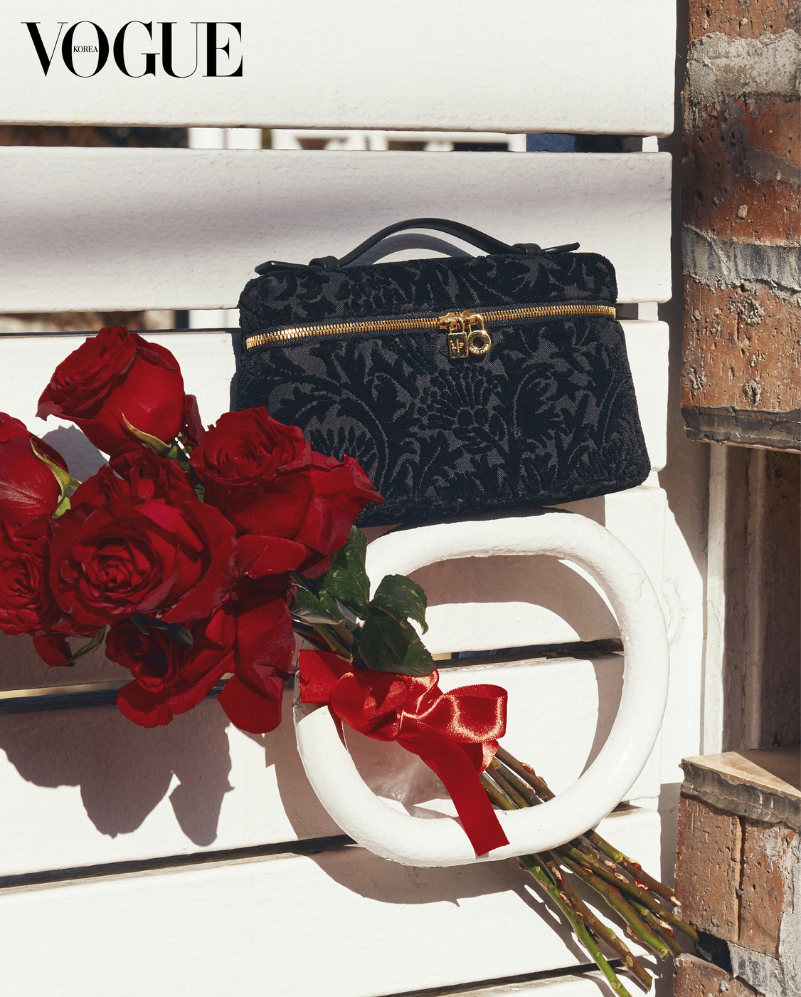 ROCKET DELIVERY 파우치를 가방으로 재해석한 ‘엑스트라 백 L27’. 스트랩 길이를 조절해 크로스백과 숄더백으로 활용할 수 있다. 가방은 로로피아나(Loro Piana).