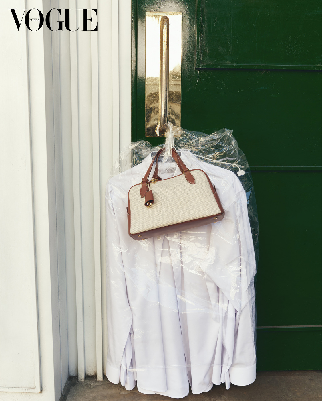 HAPPY SEOLLAL 코튼과 리넨을 혼합한 캔버스 소재는 단단하면서도 유연한 매력을 지녔다. 가죽과 캔버스의 조화가 멋스러운 ‘룸’ 백.
