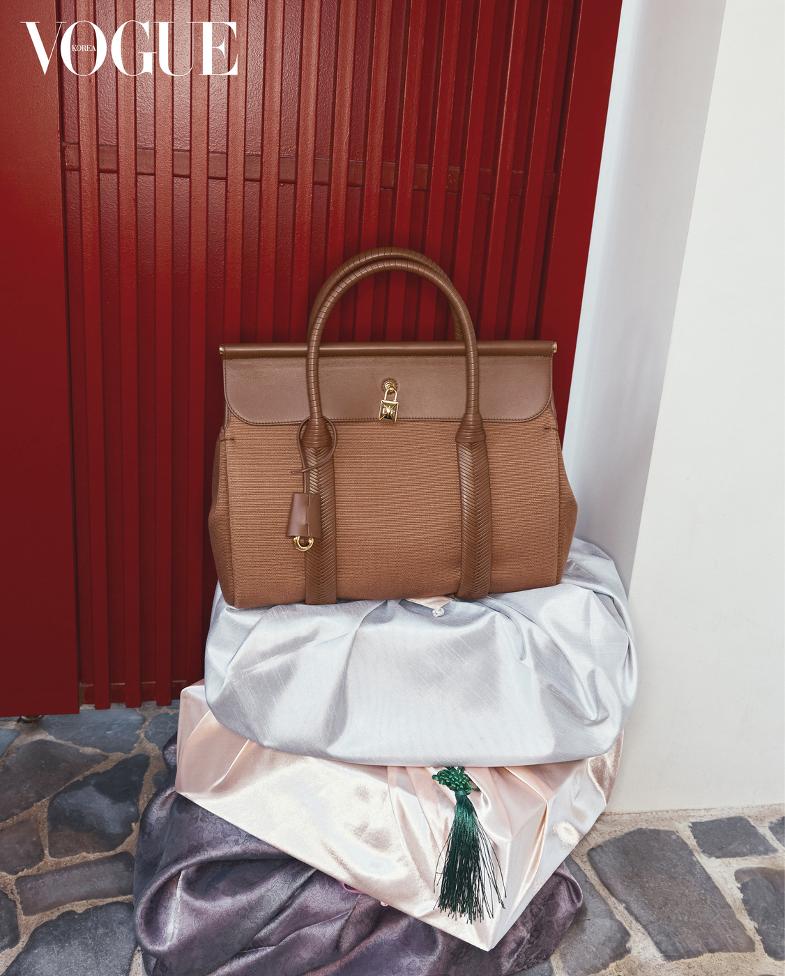 MILKY WAY 로로피아나의 가방에는 한 세기를 넘어 축적된 장인 정신이 담겨 있다. ‘룸’ 백은 상단을 가죽과 금속 막대로 장식해 견고한 형태를 자랑한다.
