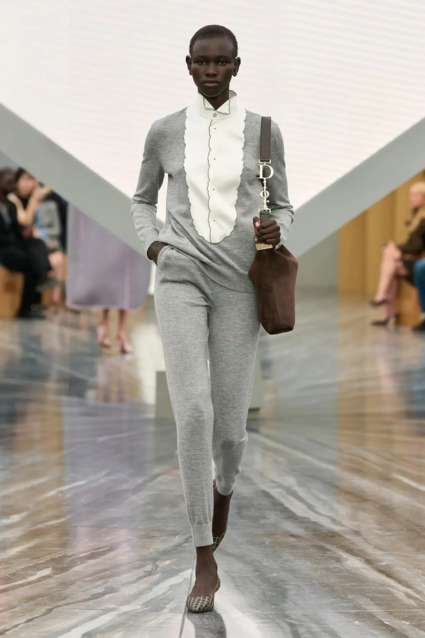 이제는 저녁 약속 갈 때도 입어보세요. 이번 시즌 런웨이에서 조거 팬츠는 집과 헬스장을 벗어났습니다. 실루엣은 여전히 편안하지만, 위에는 구조적인 블레이저나 실크 톱을 얹어 균형을 맞췄습니다. 중요한 건 신발 선택입니다. 스니커즈도 힐도 피하고 로퍼나 발레리나 슈즈처럼 힘을 덜어낸 클래식으로 마무리해야 조거가 외출복이 됩니다. 조거 팬츠를 입고도 차려입은 듯한 인상을 주고 싶다면 포멀한 허리띠를 매보세요.