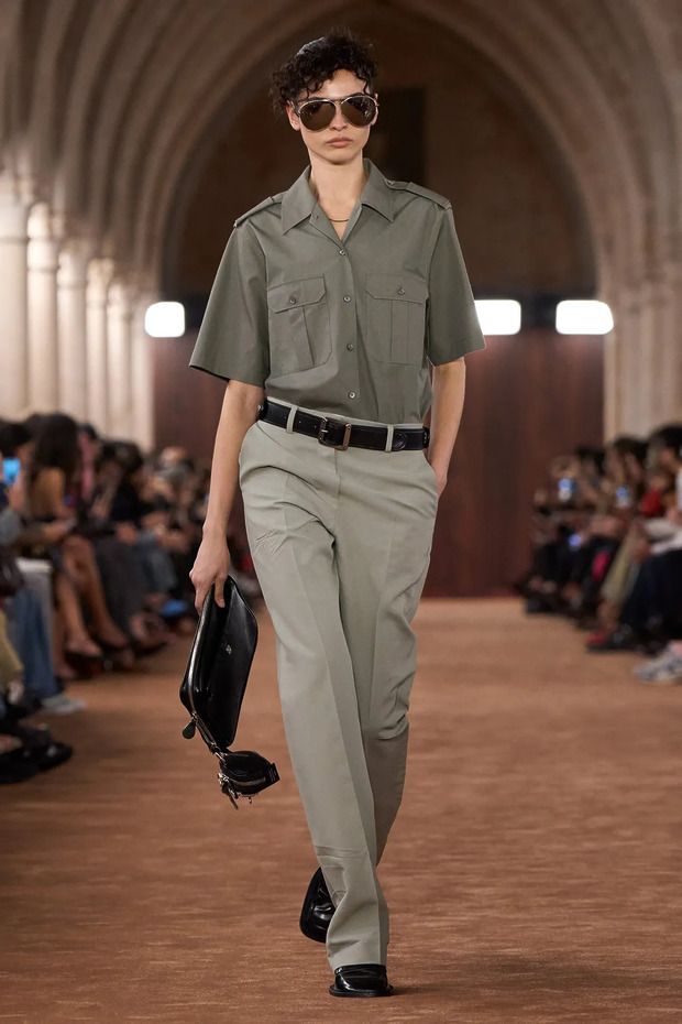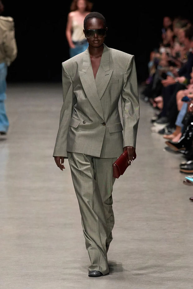 매 시즌 빠지지 않는 테일러드 팬츠는 이번에도 자리를 지켰습니다. 다만 예전처럼 클래식한 수트 바지에 머무르지 않고 허리선을 낮추거나 실루엣을 넓히는 식으로 변주됐죠. 오래 입고 싶다면 주름 간격이 촘촘하지 않은 디자인을 고르는 것이 좋습니다. 그래야 유행을 타지 않고 상의를 바꿔가며 활용할 수 있거든요. 이렇게 앞단에 주름이 잡힌 바지는 상의를 바짝 넣기보다 반만 넣거나 아예 빼서 주름이 만드는 세로결을 살려주면 더 멋져 보입니다.