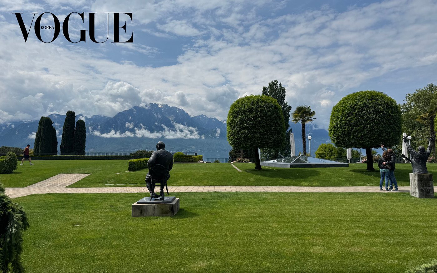 20250521 세상에는 비현실적인 풍경이 무궁무진하다. 도시에서 나고 자란 나로서는 도저히 상상조차 할 수 없는 그런 곳 말이다. ‘노잼’으로만 알았던 스위스 몽트뢰의 봄이 그랬다. 레만 호숫가에 자리한 그 마을에선 웅장한 알프스를 배경으로 눈앞에 환상적인 절경이 펼쳐진다. 손을 뻗어 셀피를 찍는 중년 부부의 마음을 백 번, 아니 천 번 이해한 순간!