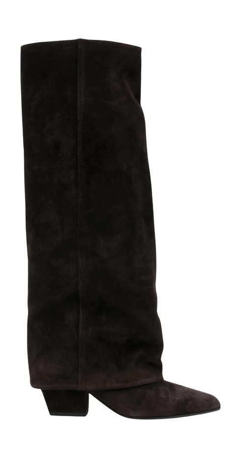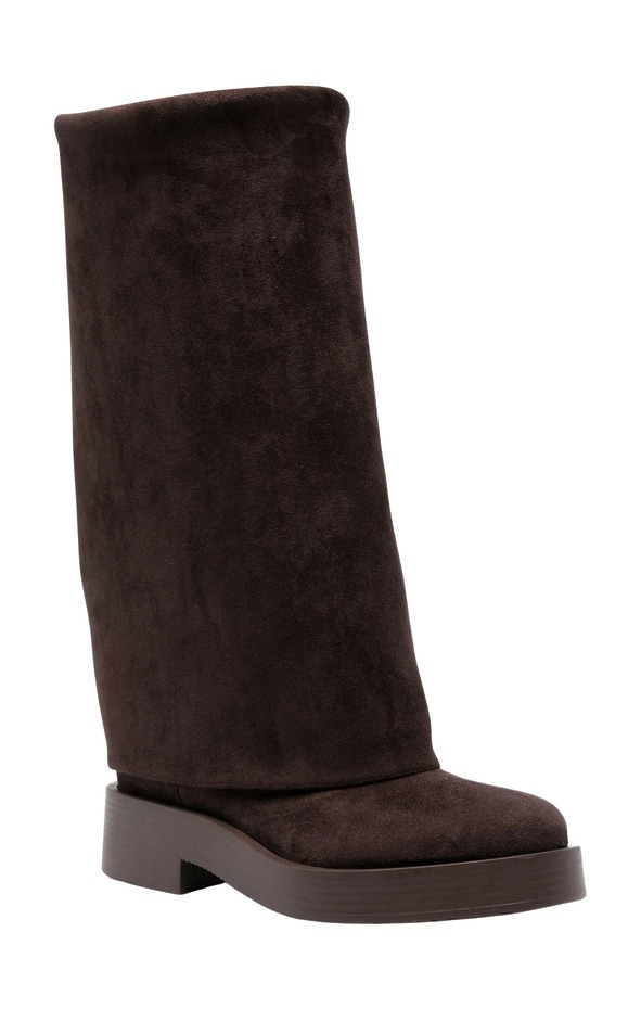 두껍게 접힌 디테일 때문에 해적이 연상되는 카프 폴드 부츠는 이번 시즌 가장 자유로운 실루엣입니다. 알렉산더 맥퀸, 끌로에, 에트로 런웨이에도 계속 등장했죠. 우드 톤의 브라운 컬러라면 러플 장식 미니 드레스와 아주 잘 어울려요. 안목 있는 보헤미안 무드를 가장 완성도 높게 연출할 수 있는 조합입니다.