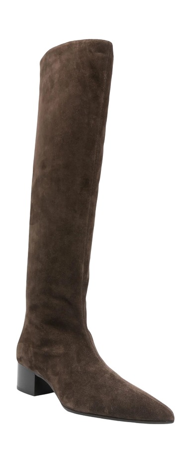 날렵한 앞코와 자연스럽게 늘어진 듯 주름진 니 하이 부츠는 그냥 평범한 롱부츠와는 결이 달라요. 브라운이라면 블랙보다 훨씬 부드러운 인상을 주죠. 브라운 톤을 연결하는 드레스에 와이드 벨트나 미니 백을 더해보세요. 데이트 룩에도, 출근 룩에도 모두 쓸모 있어요.
