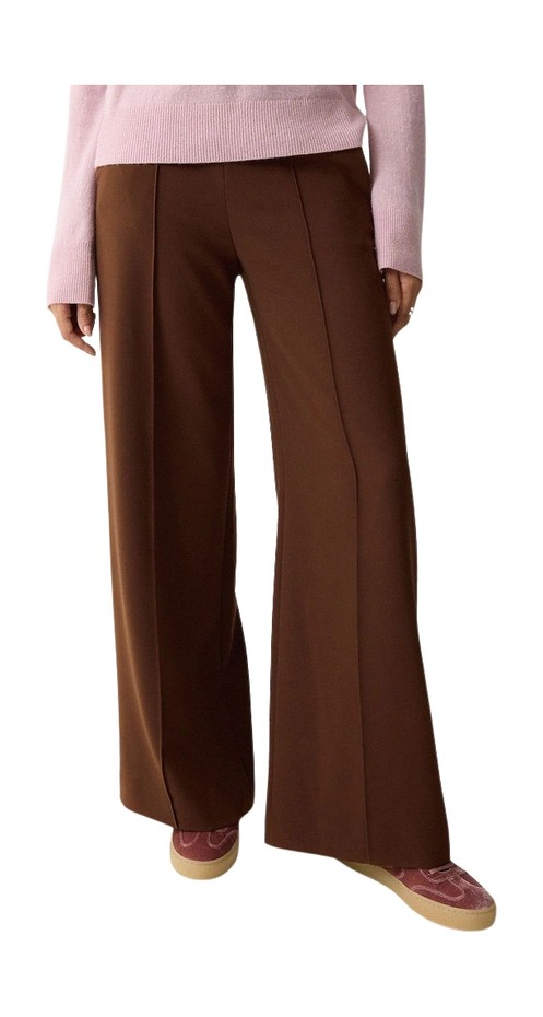 직소브라운 모던 크레페 와이드 레그 트라우저