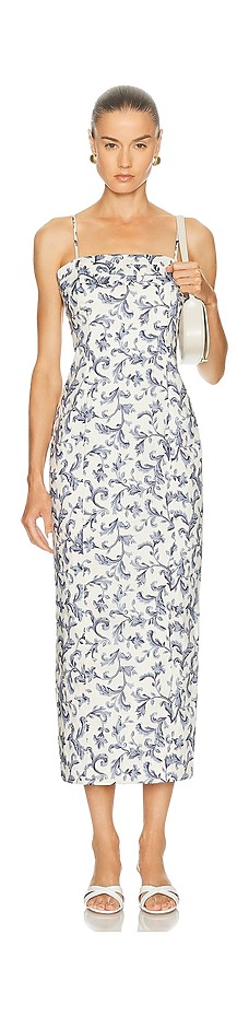 패턴 드레스나 플로럴 드레스는 절대 미니멀 룩이 될 수 없다고 여기나요? 아래 사진을 보면 가능해 보이죠. 그 비결은 시각적 질서에 있습니다. 화려한 컬러에 알록달록 꽃이 들어갔다면 맥시멀이 되겠지만, 흰색 바탕에 꽃이 들어간 그녀의 버전처럼 컬러를 최소한으로 하니 과하지 않습니다. 프릴이나 레이스 등 화려한 디테일이 없는 것도 중요하죠. 캐롤린의 룩을 살펴보면 주름치마처럼 라인이 들어간 것을 볼 수 있습니다. 덕분에 그녀가 좋아하는 슬립 드레스나 H 라인 치마처럼 실루엣이 간결하죠. 마지막으로 특별한 액세서리 없이 머리를 풀어 헤친 채 블랙 토트백과 슬링백 슈즈로 마무리하니 눈에 거슬리는 것 없는 똑 떨어지는 미니멀 룩이 됩니다.