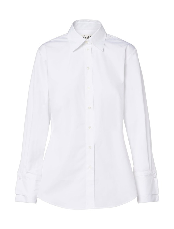 그녀의 미니멀 룩 포인트는 여성성을 잃지 않는 데 있습니다. 1980년대부터 1990년대까지 주체적인 여성상의 확립과 함께 미니멀 룩이 급부상하면서 블레이저, 트라우저 같은 매니시한 아이템을 흔히 떠올리게 됩니다. 하지만 미니멀 룩은 단순히 넉넉한 품의 블레이저를 입는다고 완성되는 게 아닙니다. 캐롤린 베셋처럼 몸의 라인이 드러나도 됩니다. 셔츠의 직선적인 실루엣과 몸의 곡선이 만나 오히려 세련미를 풍기니까요. 벙벙한 셔츠만 고집했다면 몸에 꼭 맞는 셔츠를 고르되 그녀처럼 목선을 드러내세요.