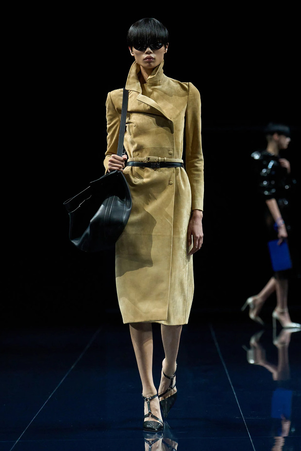 톰 포드는 ‘아찔하다’보다 ‘섹슈얼하다’는 표현이 더 잘 어울리는 T 스트랩 슈즈를 선보였습니다. 안에 아무것도 입지 않은 채 스웨이드 코트를 걸친 듯한 스타일링, 신발의 하니스 디테일은 상상력을 자극하기에 충분했죠.