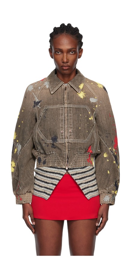 아우터 중에서는 품이 큰 봄버 재킷이 눈에 띄더군요. 사카이는 최근 유행 중인 빳빳한 생지 데님 위에 같은 소재 봄버 재킷을 매치했습니다. 룩이 단조로워 보이는 것을 방지하기 위해 셔츠의 칼라와 커프스로 포인트를 줬고요. 데님처럼 보이는 레더 봄버를 런웨이에 올린 로에베의 컬러 조합 역시 참고할 만합니다.