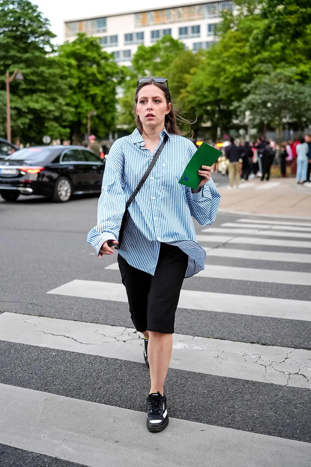 가장 현실적이고 편한 조합입니다. 미샤 바튼처럼 아빠 운동화를 신어보세요. 포멀한 팬츠에 러닝화가 만나면 자연스럽게 힘이 빠집니다. 뉴발란스 530처럼 볼륨 있는 스니커즈나 러닝화 실루엣을 고르고, 위에는 스트라이프 셔츠를 걸치면 출근과 저녁 약속 모두 가능합니다.
