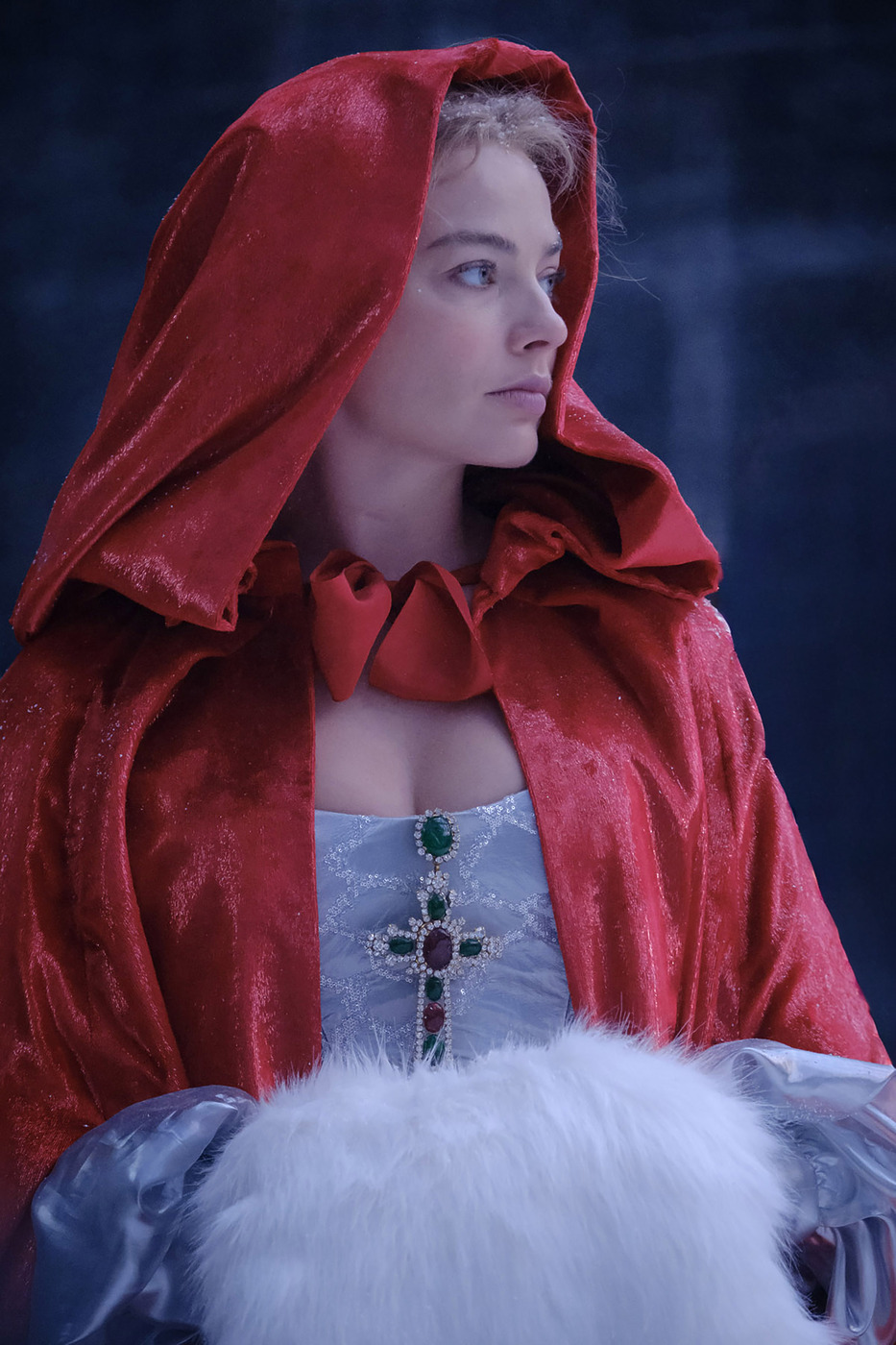 사실 그건 라텍스가 아니라 인조적인 초고광택의 질감을 강조한 합성 소재다. 레드는 영화 전반에 걸쳐 캐시를 상징하는 핵심 컬러이고, 마고는 영화에서 같은 소재 의상을 여러 벌 착용했다. 반짝이는 텍스처는 캐시의 성격과 의상을 모두 관통하는 중요한 요소다. 특히 그 장면에서는 드레스와 고무 재질처럼 유광 처리한 세트 바닥이 자연스럽게 어우러지는 동시에 서재와 블라우스의 하얀색과 매혹적인 시각 대비를 이뤄낸다.