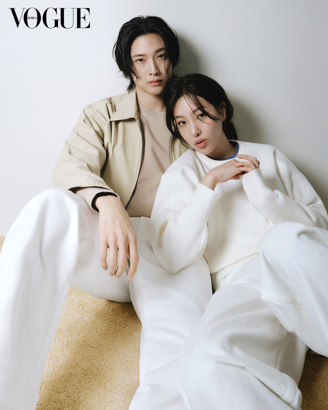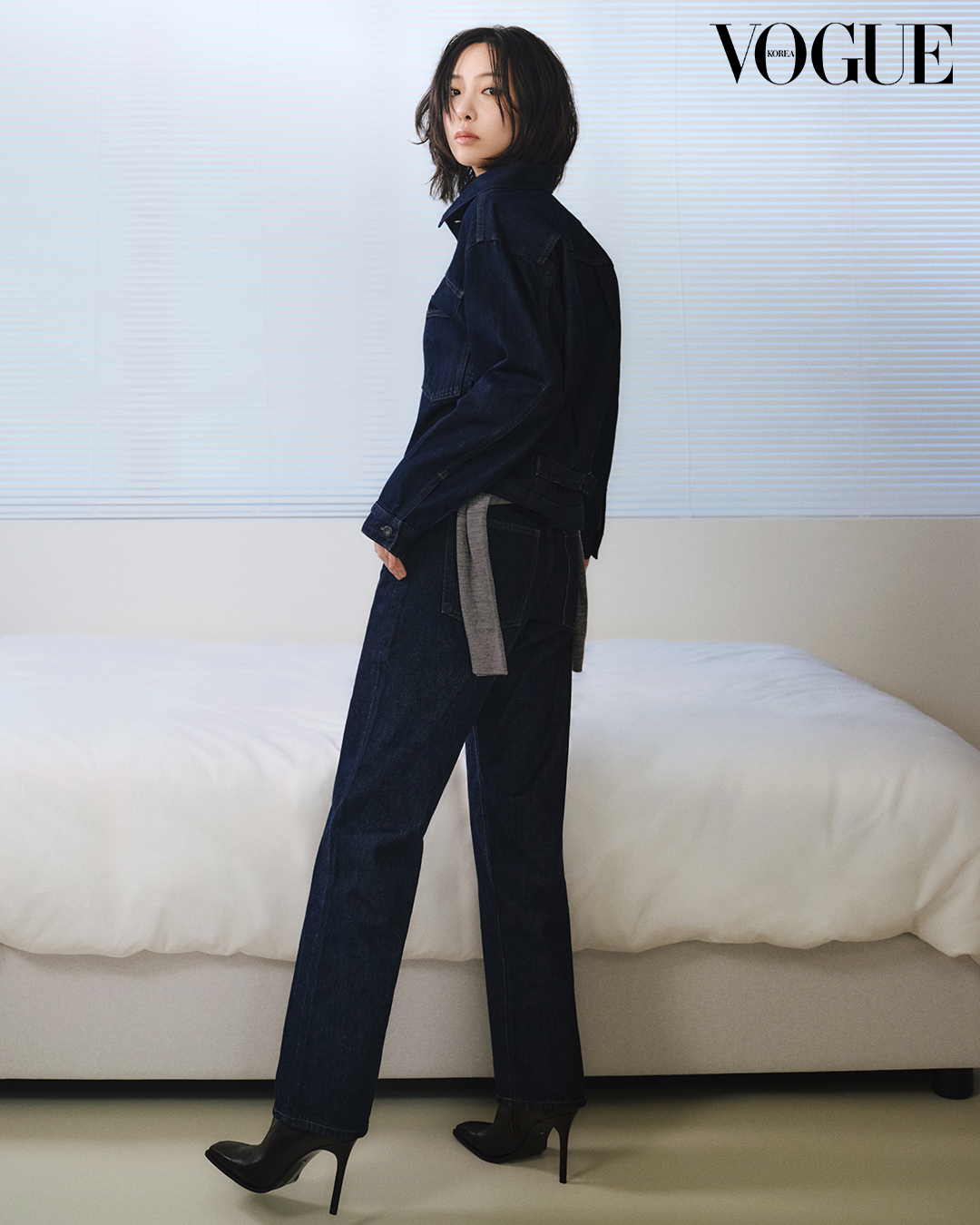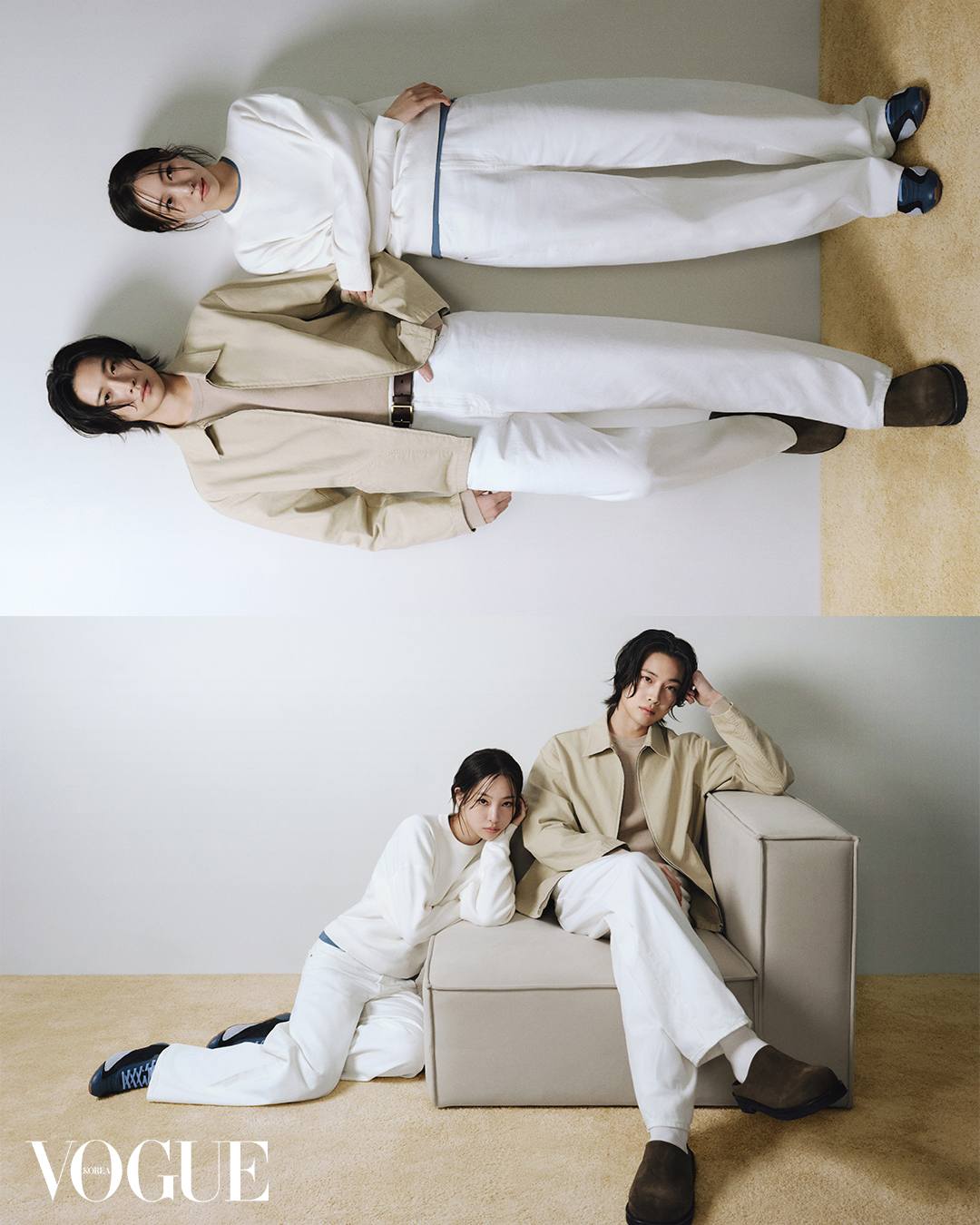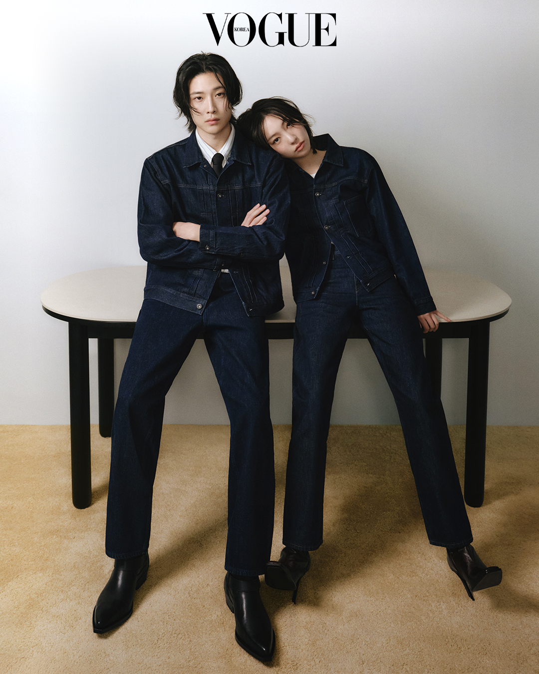 (이종원) 옥스퍼드 오버사이즈 셔츠, 데님 트러커 재킷, 와이드 스트레이트 진 모두 유니클로. (이진이) 데님 트러커 재킷, JWA 스트레이트 진은 유니클로.