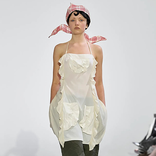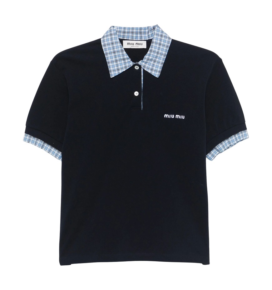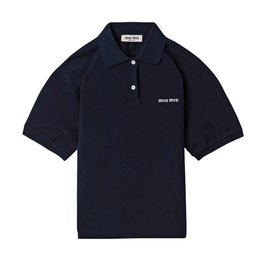 폴로 티셔츠 트렌드를 몇 년 전부터 예고한 미우미우가 빠질 수 없죠. 미우치아 프라다는 폴로 셔츠를 입을 때 목이 훤히 드러난다는 점을 고려해 실크 스카프를 활용했습니다. 때마침 다양한 방식의 스카프 스타일링이 유행하고 있으니, 올봄 미우미우의 룩을 그대로 따라 해도 좋겠군요.