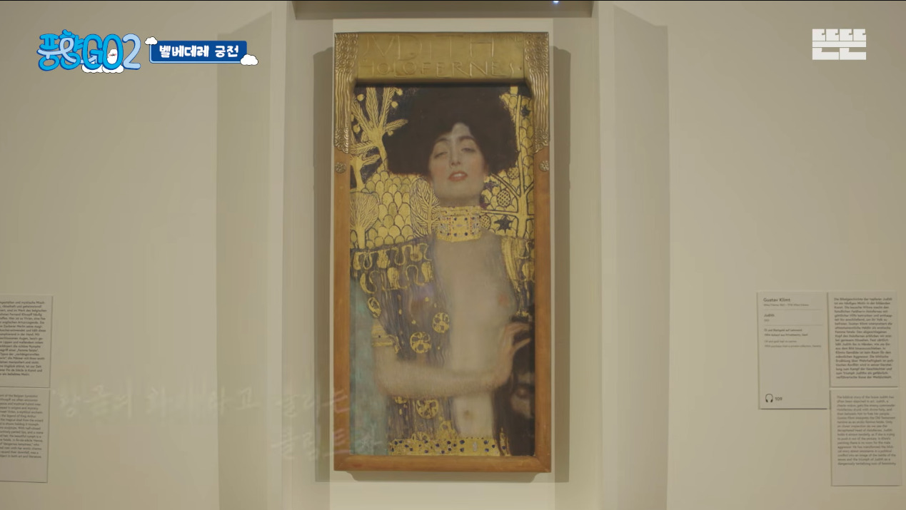 멤버들이 기대했던 클림트의 작품 가운데 가장 먼저 마주한 것은 ‘유디트(Judith)’였습니다. 성경에서 적장을 유혹한 뒤 목을 베어 조국을 구한 유디트를 담아낸 그림입니다. 매혹적이면서도 치명적인 여성상을 보여주는 작품의 하나로, 클림트의 ‘황금기’를 여는 초기 작품이죠. 작품을 본 멤버들은 감탄을 금치 못했는데요, 그중에서도 유재석은 “<무한도전>에서 이걸로 화보를 찍은 적 있다”며 유난히 반가워하는 모습을 보였습니다. 유재석과 ‘유디트’의 연결 고리, 기억하나요?