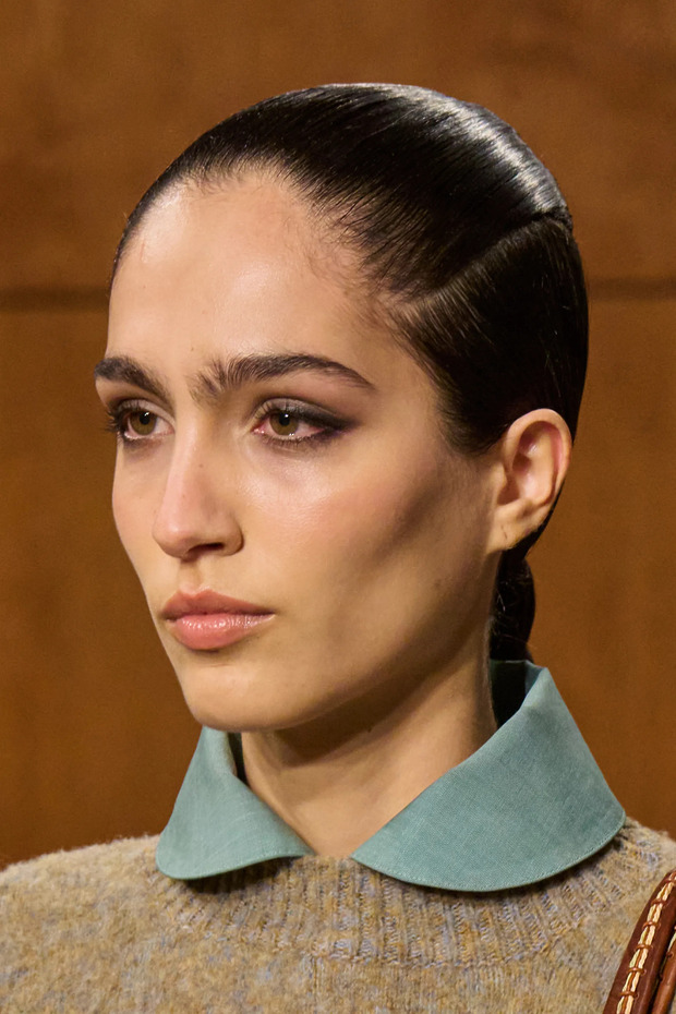 셔츠의 분위기를 결정하는 요소는 다양합니다. 원단과 컬러는 물론, 단추의 소재처럼 말이죠. 토리 버치는 그 수많은 요소 중 ‘칼라의 형태’에 주목했습니다. 이번 쇼에는 니트와 셔츠의 조합이 반복적으로 등장했는데요. 분명 힘을 잔뜩 준 듯한 스타일링이지만, 어딘가 부담스럽지 않게 다가왔습니다. 이런 조합을 연출할 때 흔히 쓰는 포인티드 칼라 셔츠 대신, 라운드 칼라 셔츠를 활용한 덕분이었습니다. ‘드레스업’을 부담스럽지 않게 만들기 위한 장치처럼 느껴졌죠. 컬러 매치에만 신경 써준다면 겉옷을 생략하는 것도 얼마든지 가능합니다. 톤 다운된 색감의 셔츠가 얼마나 다재다능한지도 확인할 수 있군요.