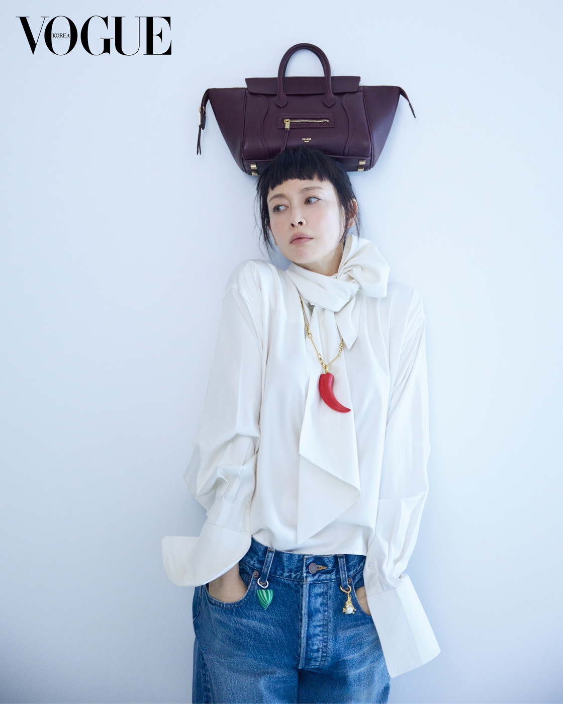 “좋아하는 여성 서사 영화요? 어휴, 너무 많죠. 몇 년 전에 본 <가장 따뜻한 색, 블루>도 좋았고, <귀주 이야기>랑 <로제타>도 정말 좋아하고요. <블루 재스민> <어디갔어, 버나뎃>처럼 삶의 부조리를 유머러스하게 풀어낸 작품도 좋아해요. 아, 그런 역할 들어오면 진짜 잘할 자신 있는데.” 이나영이 뭔가를 붙들듯 두 주먹을 그러쥐며 말했다. 스카프를 재해석한 셀린느의 드라마틱한 블라우스가 흔들릴 만큼, 끼를 펼칠 기회가 없어 몸이 근질거리는 사람처럼. 3년의 공백을 깨고 법정물을 택한 이유를 묻자 다시 양손을 움켜쥔다. “대본 읽는데, 저도 모르게 ‘윤라영’의 대사를 소리 내어 말하고 있더라고요. 빨리 그 드라마 안으로 들어가고 싶었어요. 본능적으로요.”