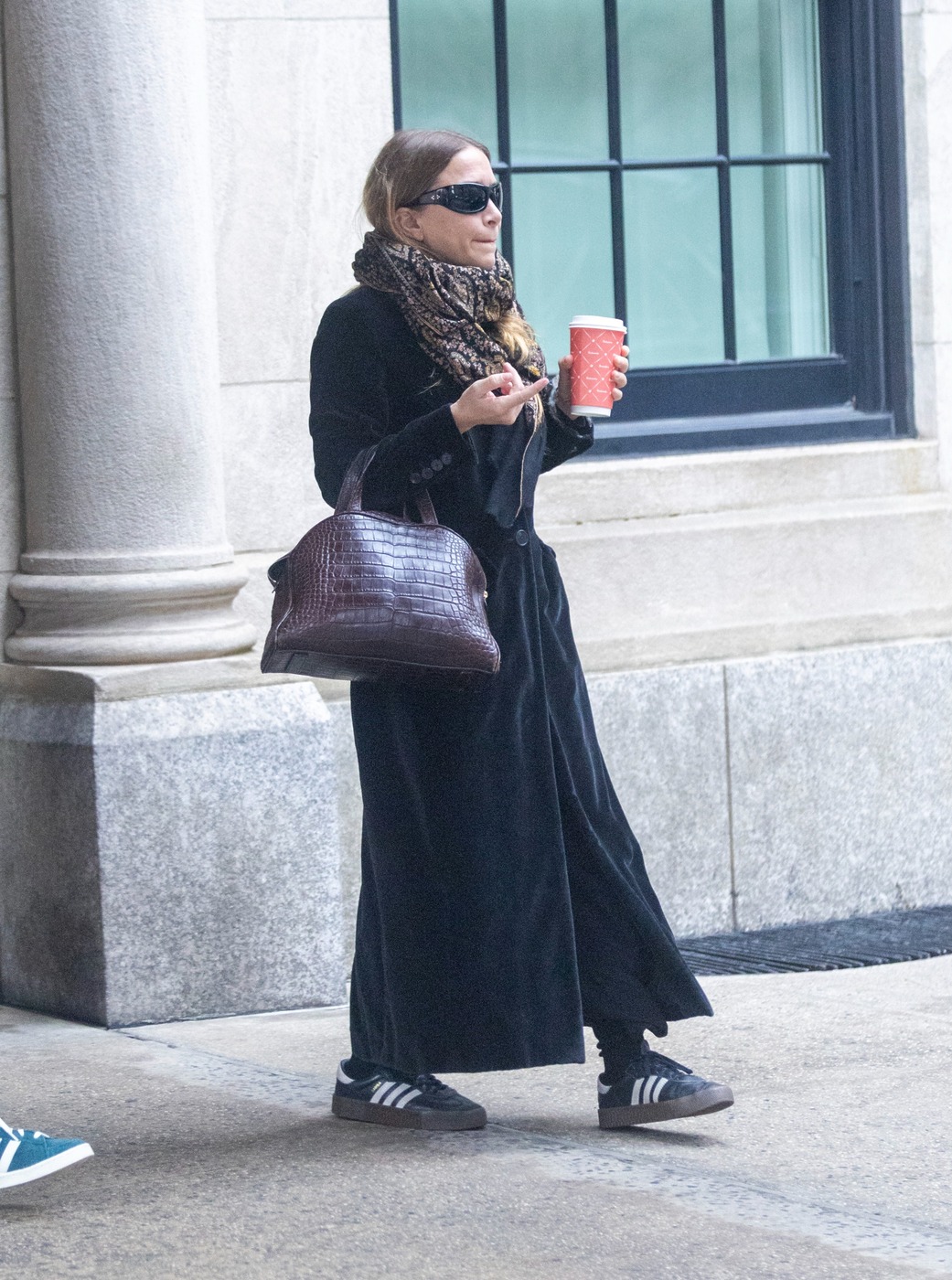 더 로우에서 카드를 긁는 게 우리 모두에게 가능한 일은 아니더라도, 브랜드의 크리에이티브 디렉터에게 스타일 힌트를 얻는 건 무료입니다. 이번 주 초, 올슨은 아트 딜러 비토 슈나벨(Vito Schnabel)과 함께 뉴욕 거리에서 포착되었죠. 잘록한 허리 라인이 돋보이는 싱글 버튼의 블랙 풀렝스 코트를 입고서 상트 암브로스(Sant Ambroeus) 커피 컵을 들고 있었죠.