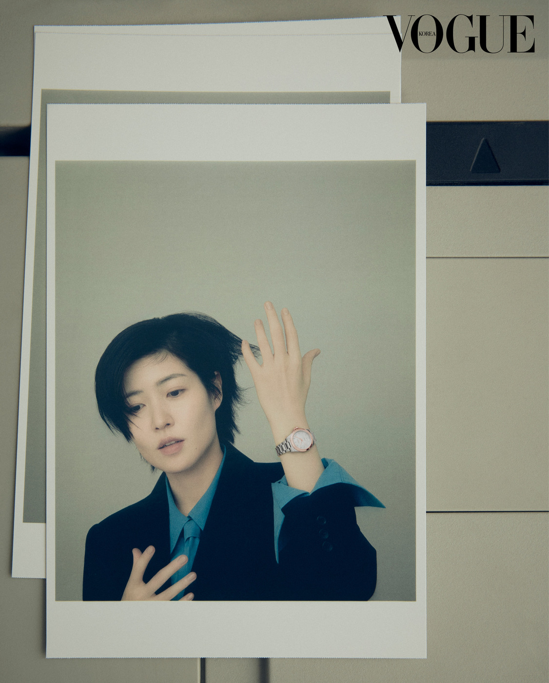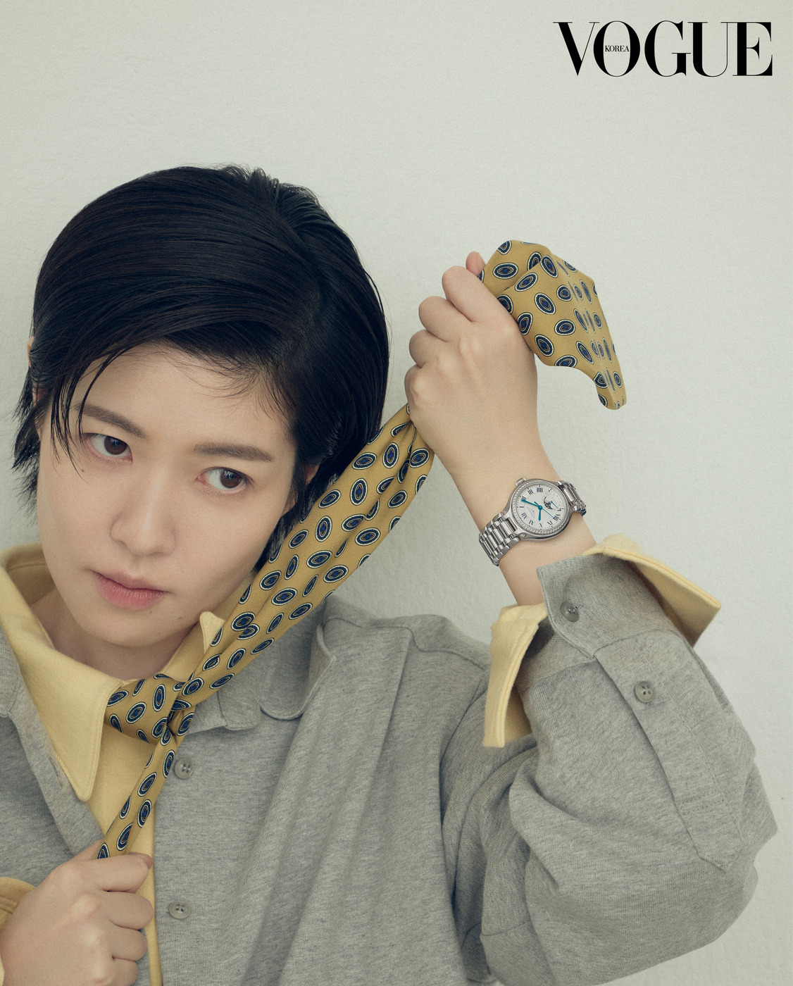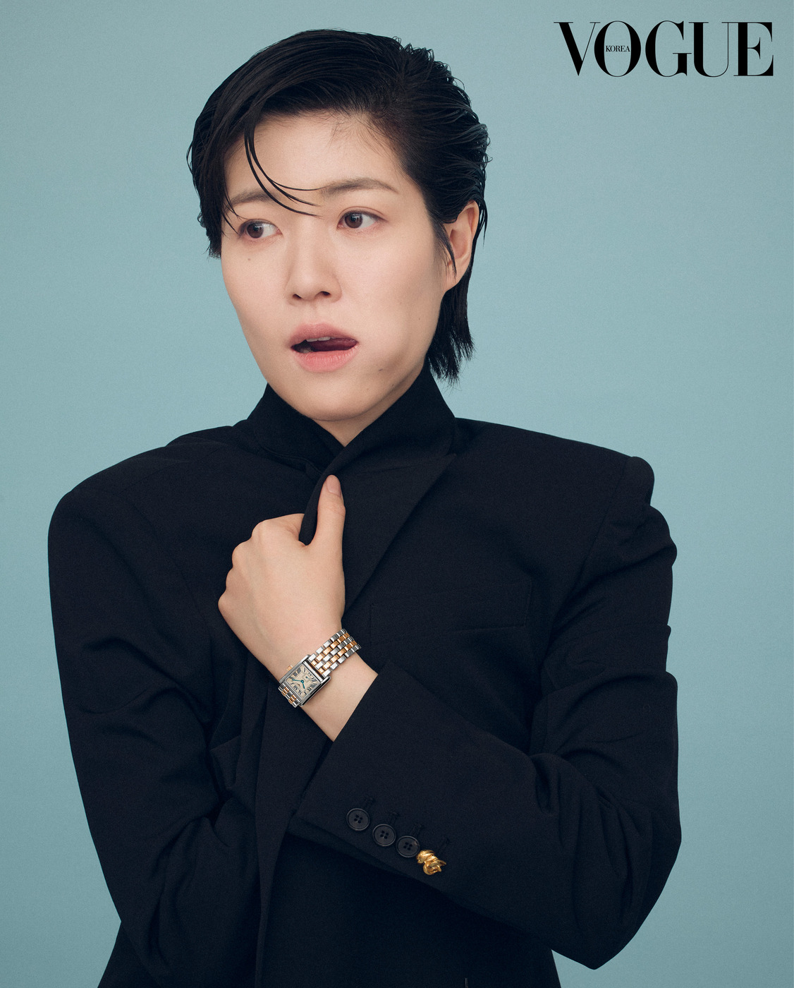 Modern Times 심은경의 손목에 자리한 '프리마루나(Primaluna)' 시계. 세련된 현대 여성을 위해 탄생한 디자인으로, 우아한 곡선과 정교한 디테일이 특징이다. 재킷은 골든구스(Golden Goose).